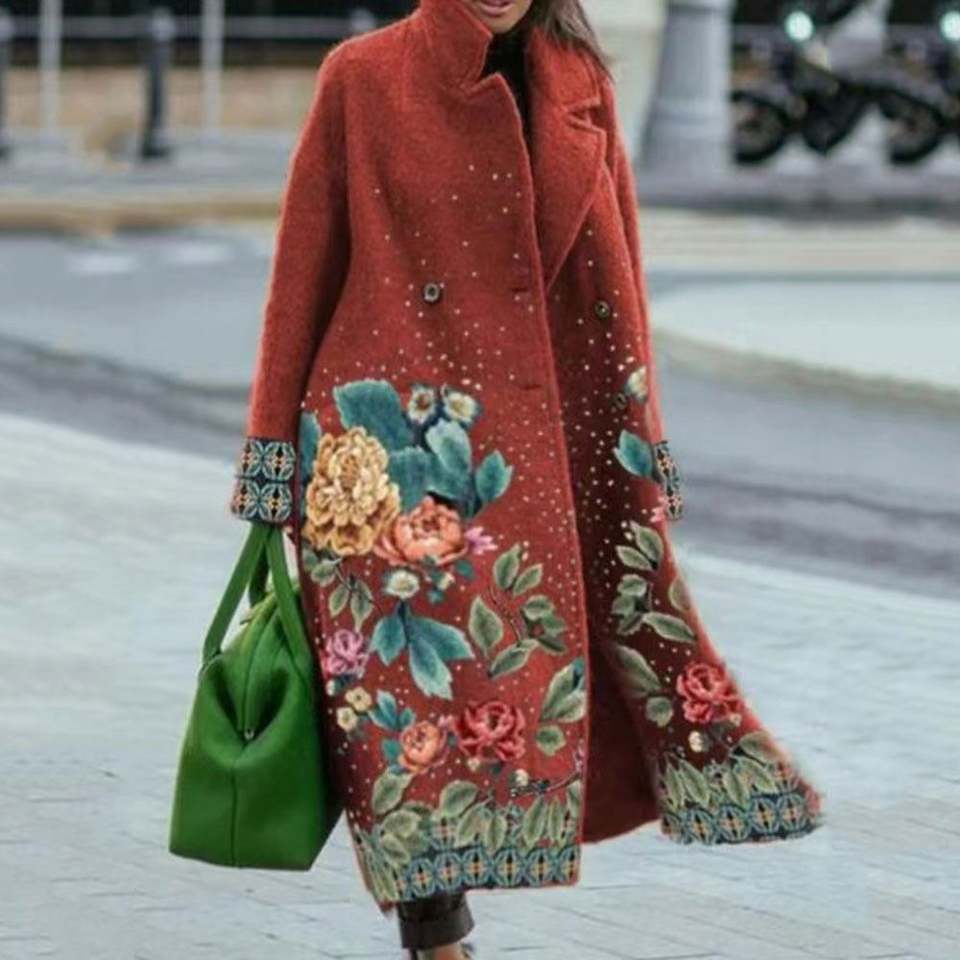 Cappotto Lungo da Donna in Tweed Stampato con Revers e Maniche Lunghe per Primavera e Autunno