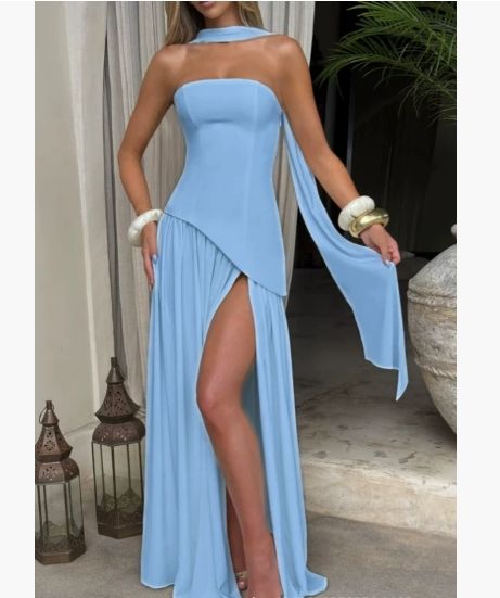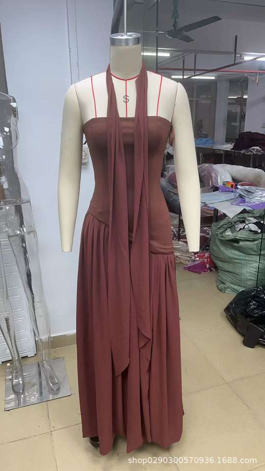 Spring and Summer 2025 Sexy Backless Tube Top Slim Fit Dress New Hot Sale Split Strap Long Dress