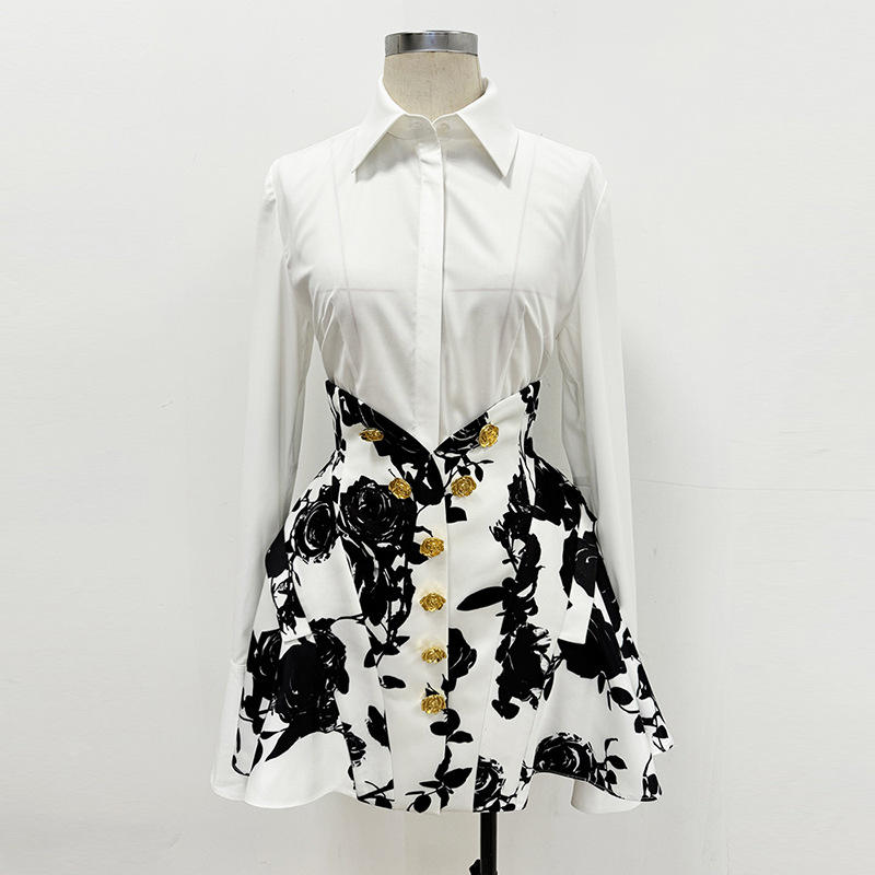 Spring and Summer 2026 New Fashion Tulip Waist Line Rose Metal Buckle Printed Skirt White Shirt Two-piece Women's Clothing