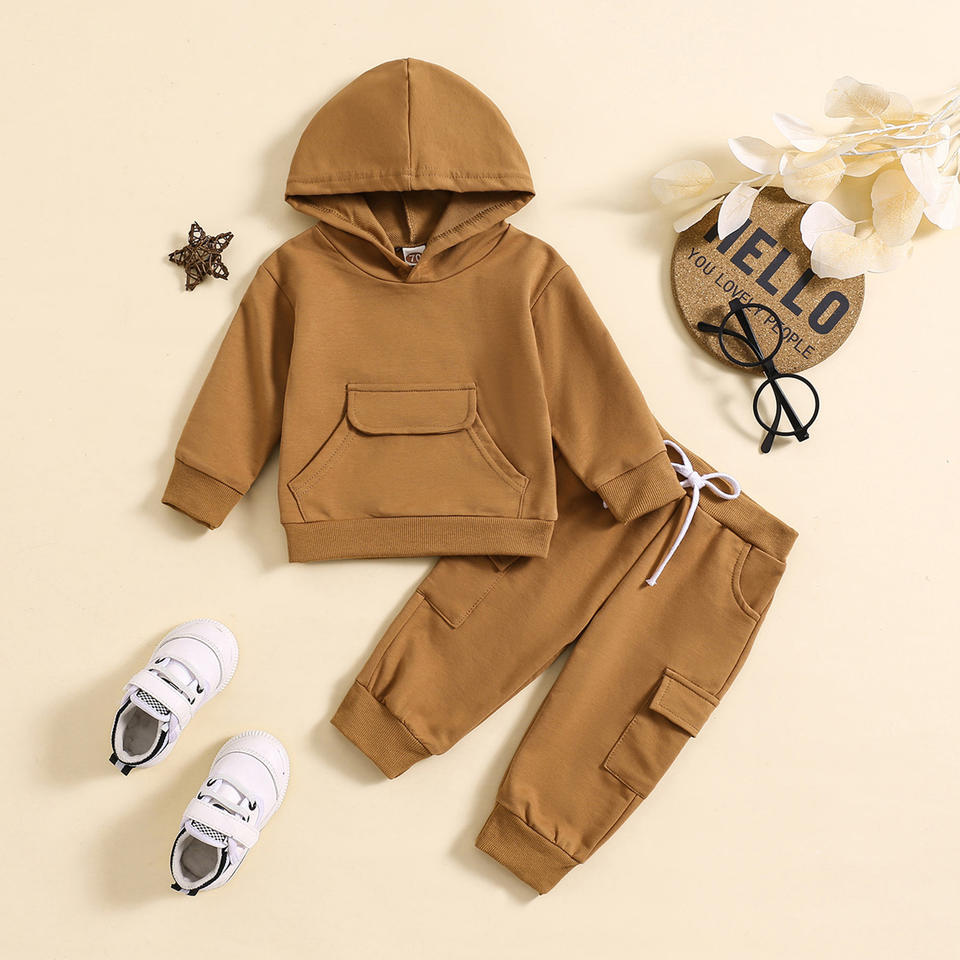 Primavera nuovo arrivo felpa con cappuccio di colore puro con patta pantaloni con patta da lavoro completo completo due pezzi disponibile In due colori
