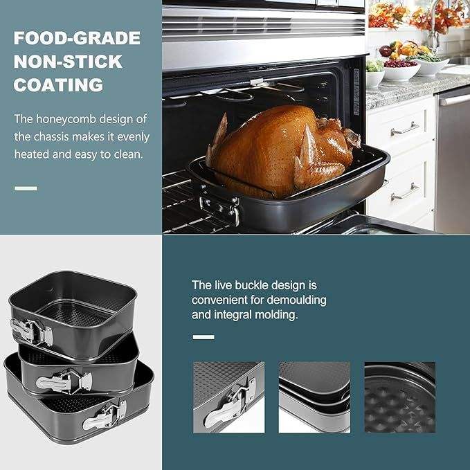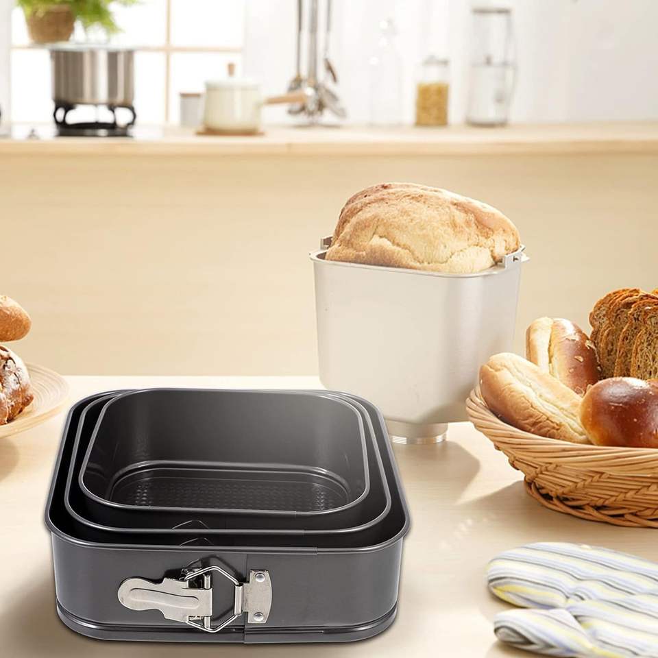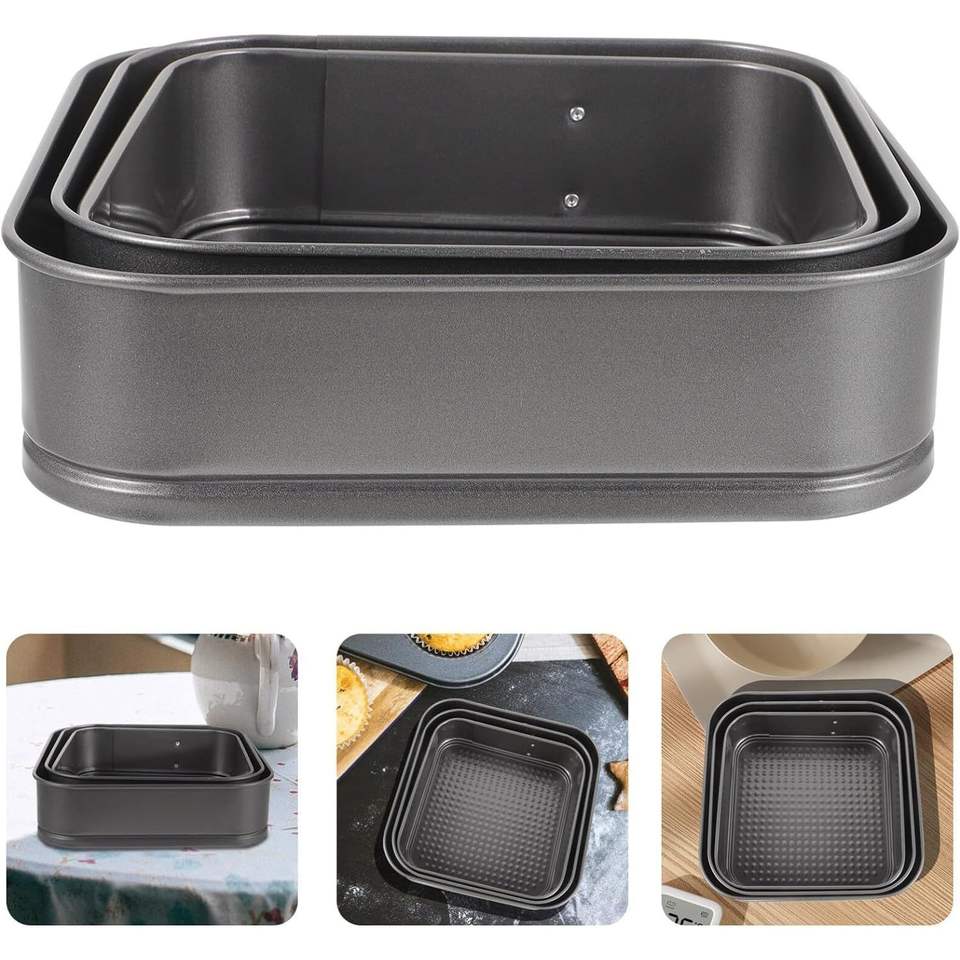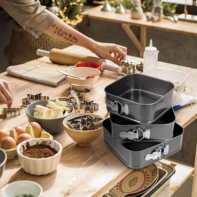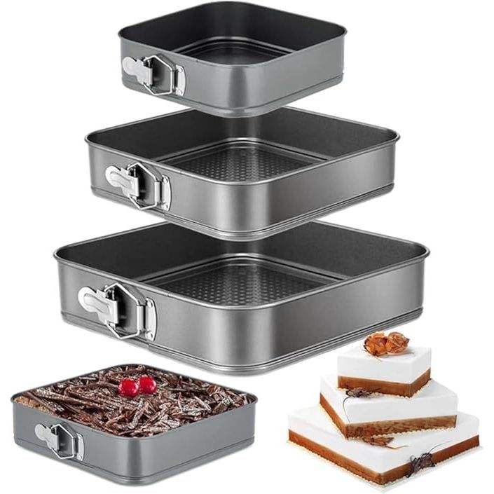 Set di Teglie per Torte con Fondo Rimovibile, Antiaderenti in Acciaio al Carbonio, 3 (4, 7, 9 Pollici) Teglie Quadrate per Cheesecake