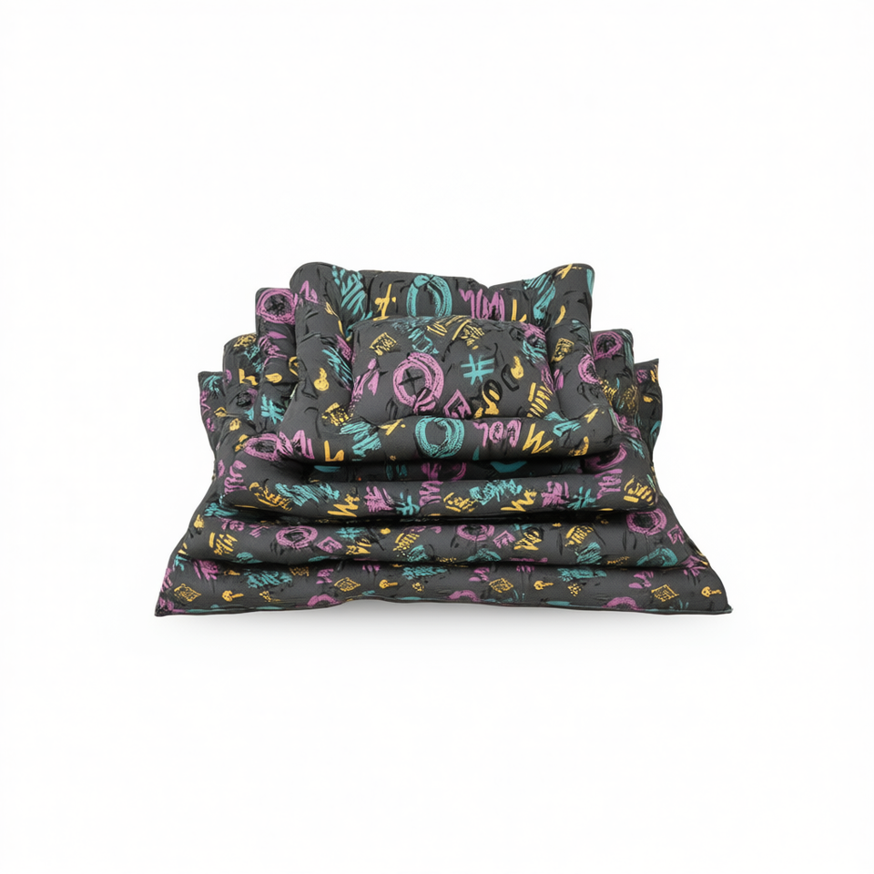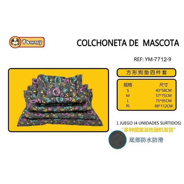 Set di Quattro Tappetini per Cani con Fondo Antiscivolo Quadrato e Motivo, Eleganti Lettini per Animali Domestici
