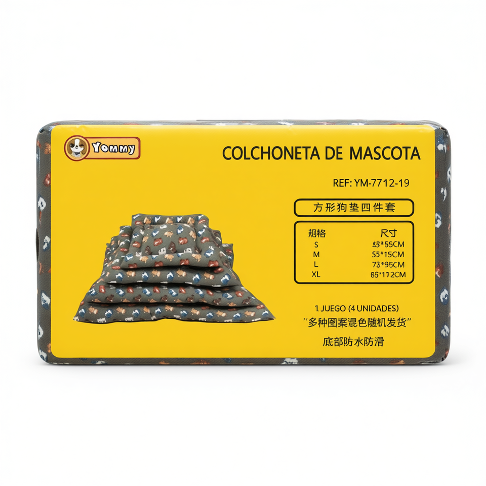 Set di Quattro Tappetini Antiscivolo per Cani con Motivo Quadrato sul Fondo