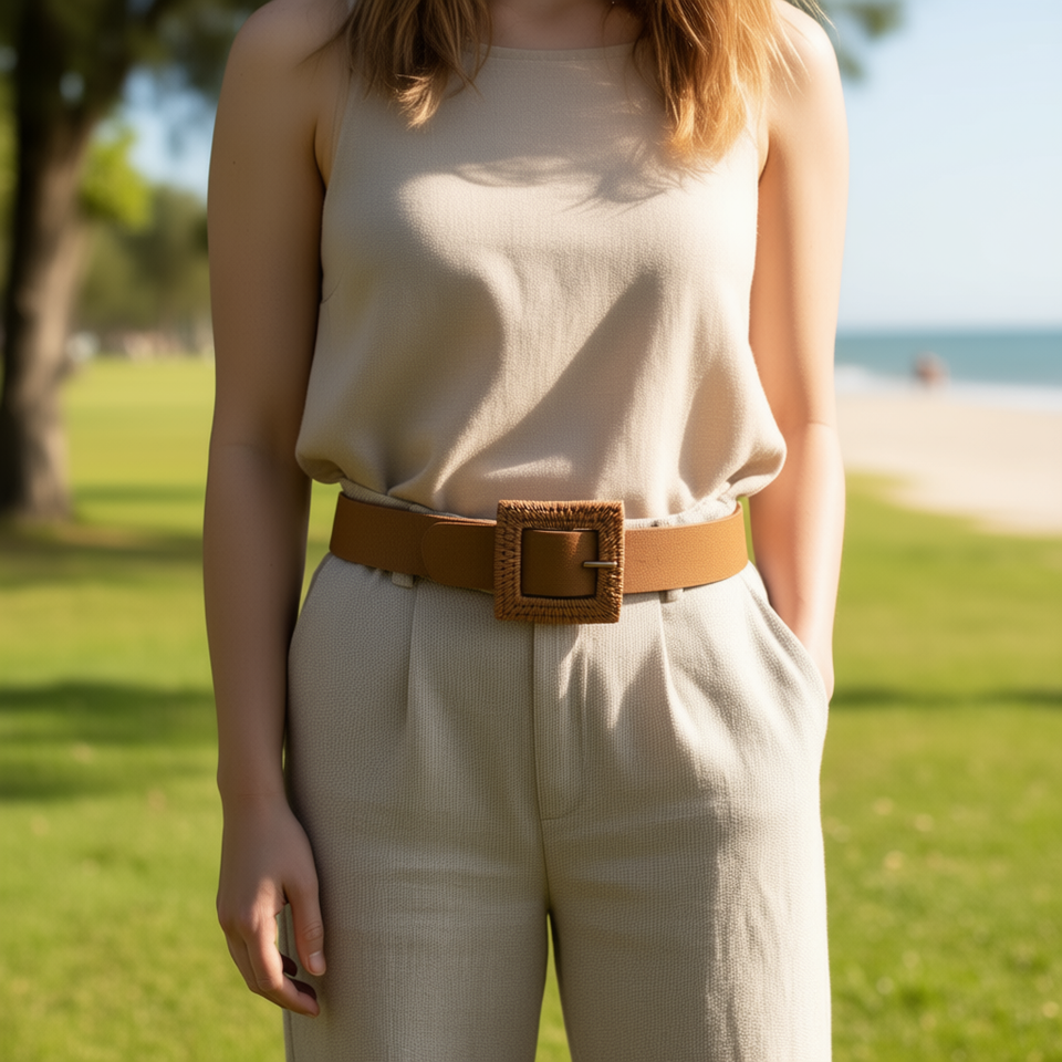 Cintura Angelina con Fibbia Quadrata 3,5cm in Tessuto Intrecciato Stile Bohémien Accessorio di Moda