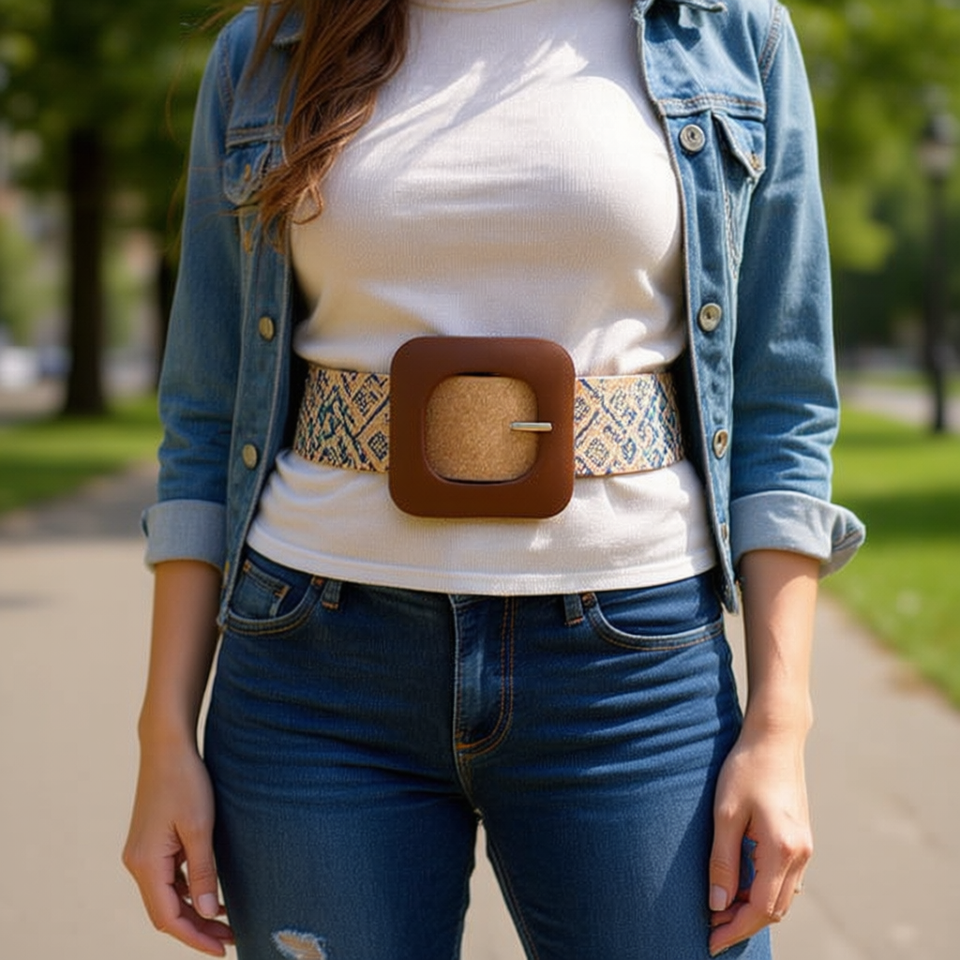 Cintura in tessuto con fibbia quadrata, larghezza 3,5 cm, con design a motivi, accessorio moda donna