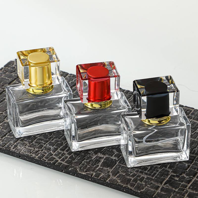Flacone Spray Ricaricabile in Vetro Trasparente Quadrato con Scatola e Funzione di Arresto Pratica