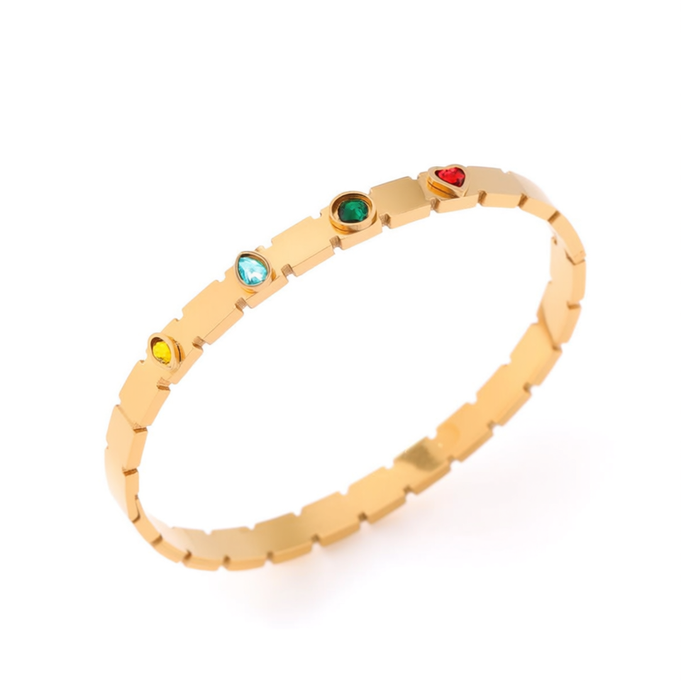 Bracciale Angelina in Acciaio Inossidabile Placcato Oro con Pietre Colorate, Unisex per Uso Quotidiano
