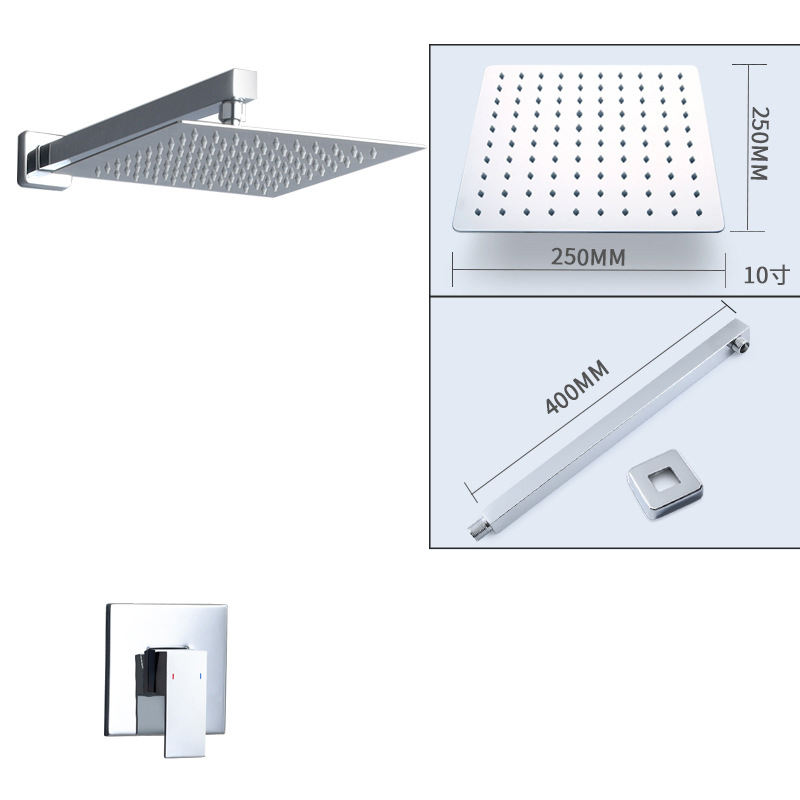 Soffione Doccia Quadrato a Incasso a Parete con Funzione Singola Integrata nel Muro per Hotel, Set Doccia Caldo/Freddo