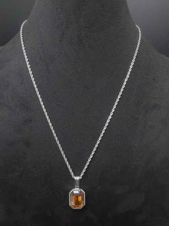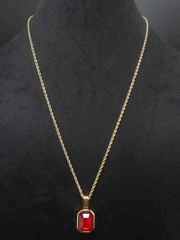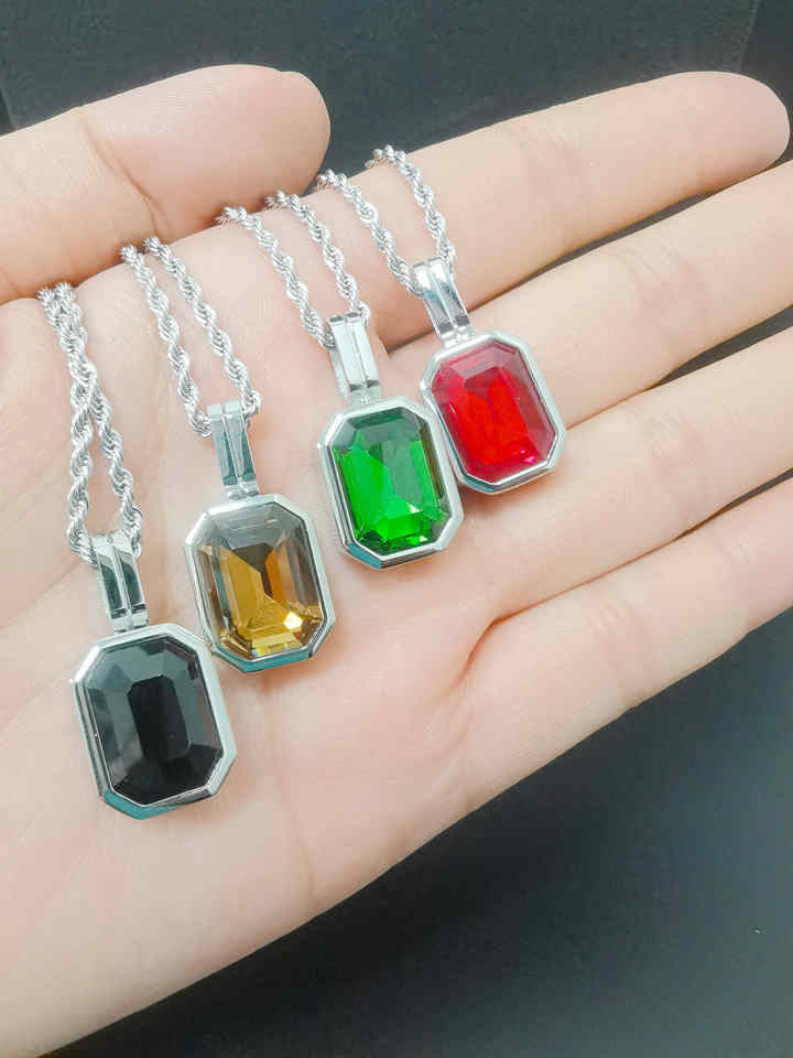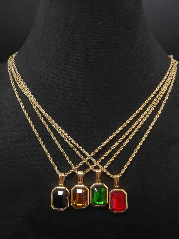 Classico Ciondolo Quadrato in Cristallo Rosso, Verde, Beige e Nero Collana a catena Singapore intrecciata placcata oro 18 carati