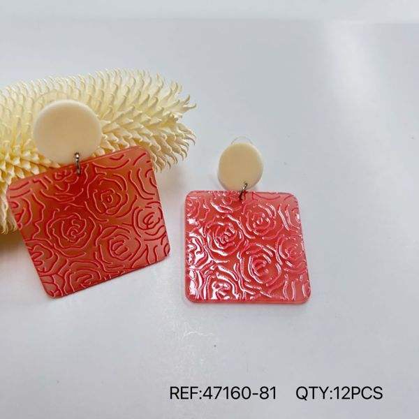 Orecchini pendenti Angelina Square con motivo a rosa rossa in resina acrilica, gioielli da festa alla moda da donna