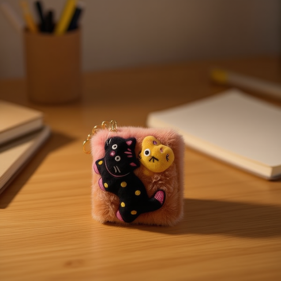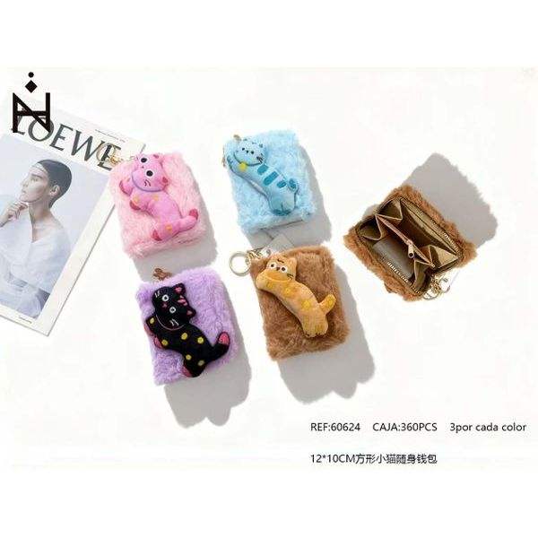 Portafoglio tascabile quadrato con gattino 12x10cm in pelliccia sintetica, mini borsa con portachiavi per donne e ragazze, accessorio moda