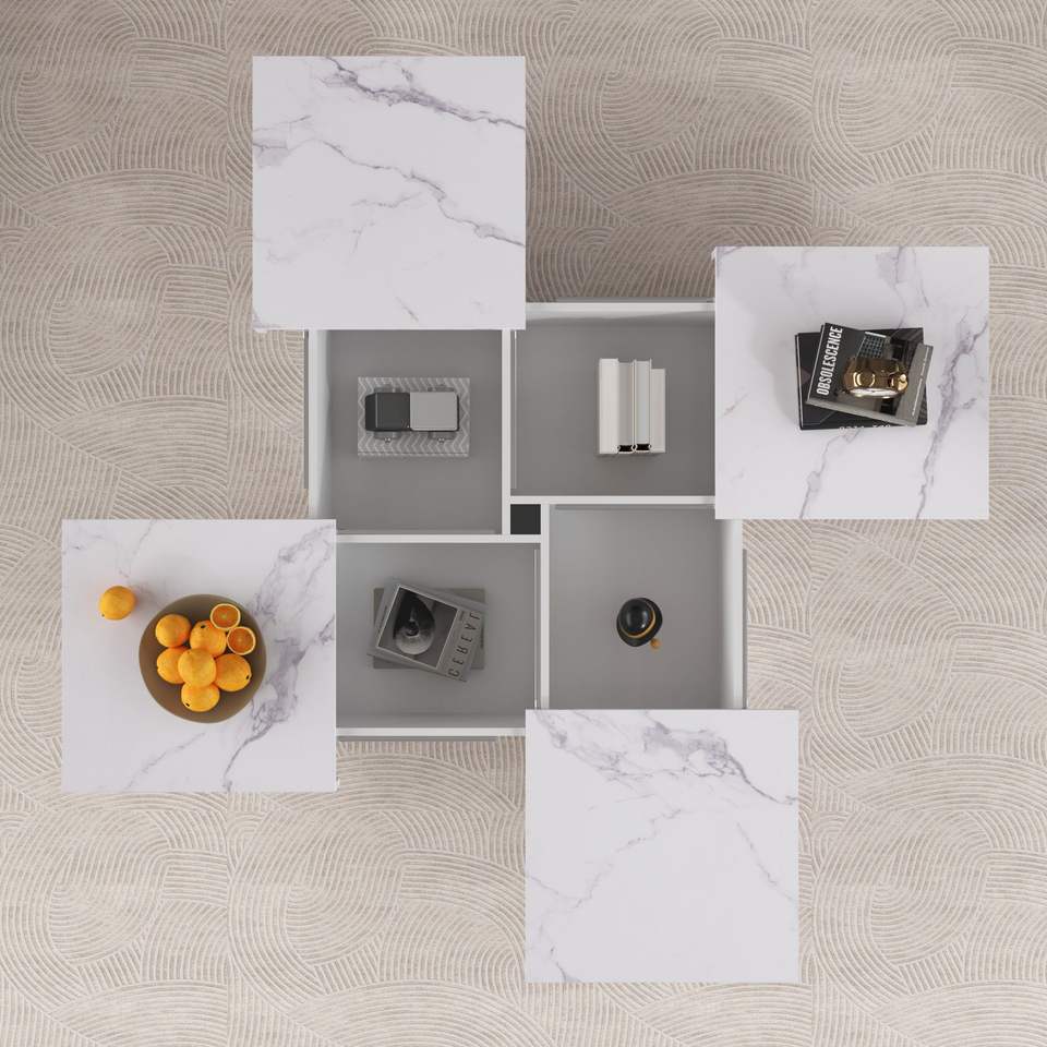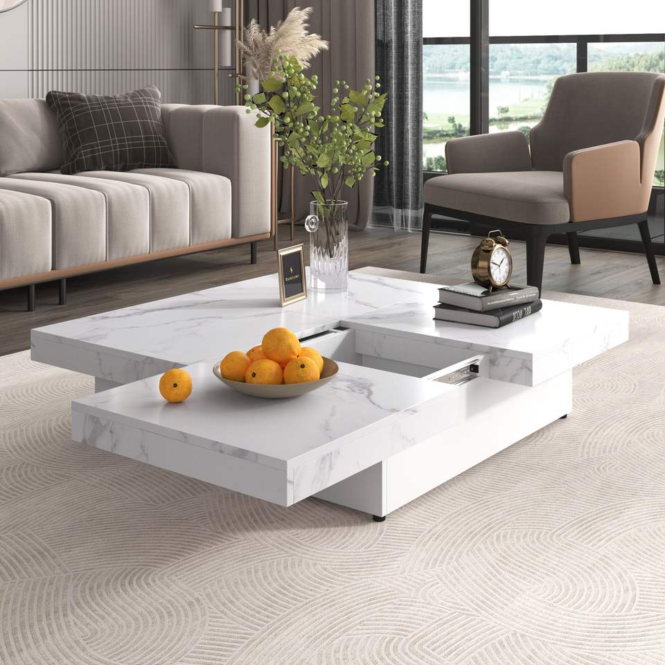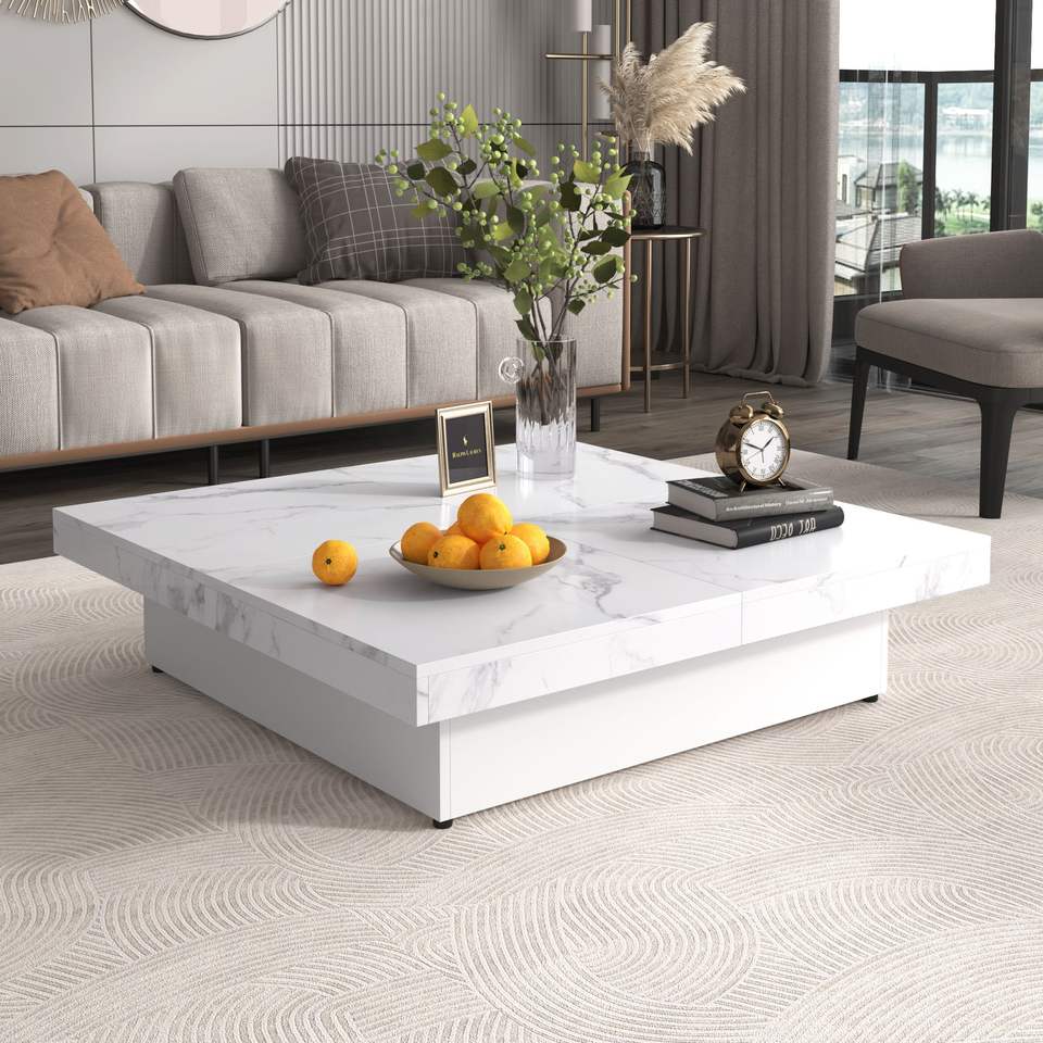 Tavolino da Caffè Quadrato con Piano Scorrevole e Vano Portaoggetti in Marmo Impiallacciato, 39,4 Pollici