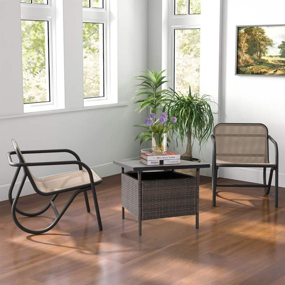 Tavolino Quadrato da Esterno con Foro per Ombrellone, Tavolo da Caffè in Vimini per Giardino, Cortile e Bordo Piscina