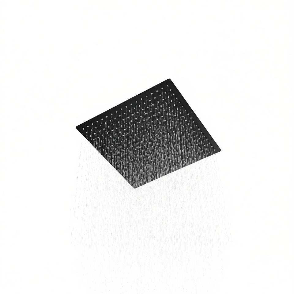 Soffione Doccia Quadrato a Pioggia 16 Pollici Nero Opaco in Acciaio Inox 304, Montaggio a Parete, Accessorio Bagno