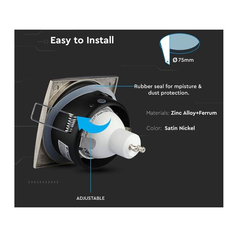 Portalampada Quadrato Incassato GU10 MR16 per Faretti LED in Nichel Satinato Impermeabile IP54 Categoria Prodotto Portalampade e Basi SKU-3616