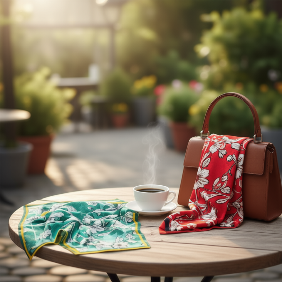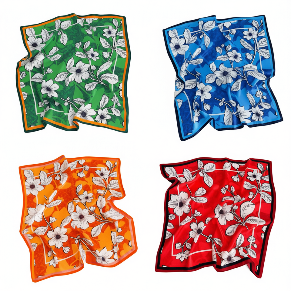 Foulard Quadrato 70x70Cm con Stampa Floreale Colori Vivaci Accessorio Moda Donna