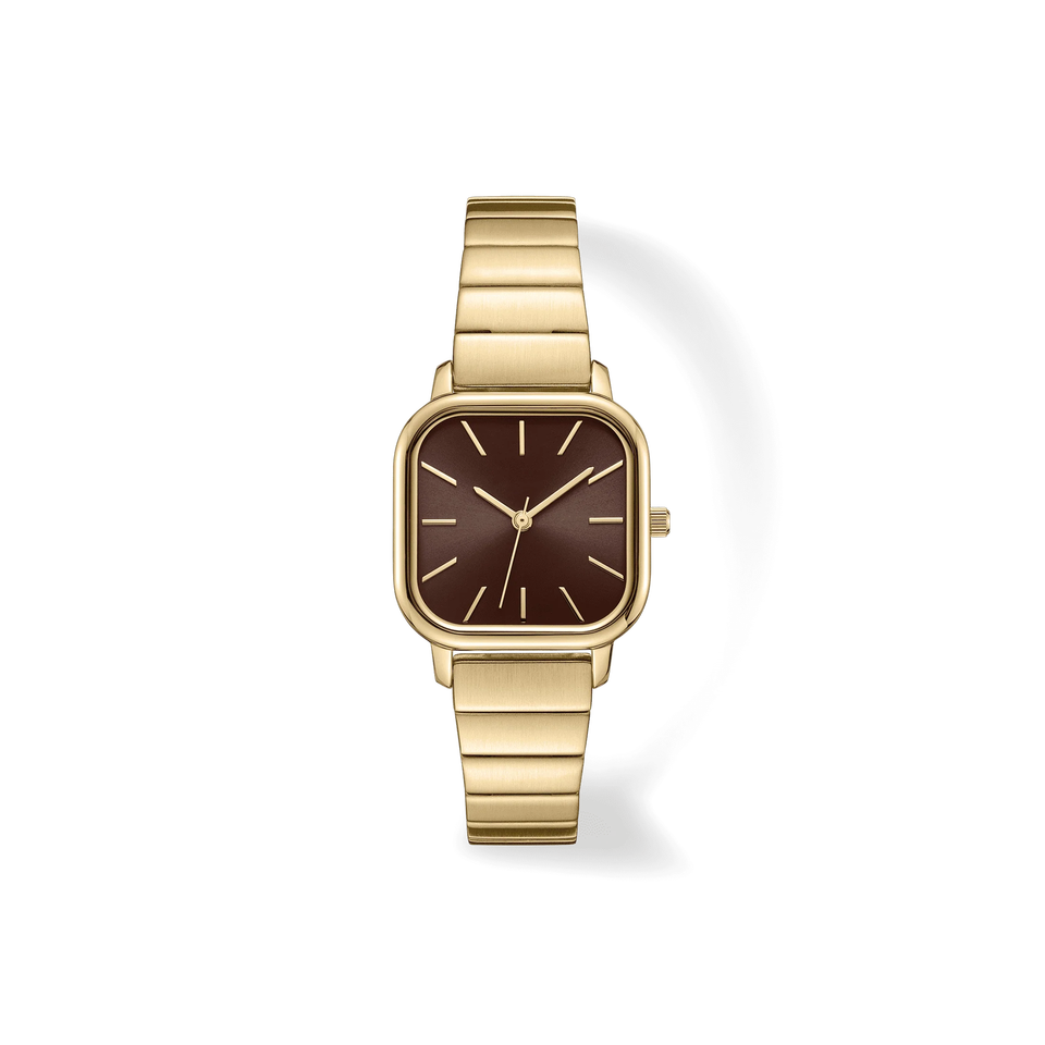Square Seiko Quartz Sport Fashion Watch for Women Stainless Steel Chain Band Gold Vintage Color Glass Dial Waterproof