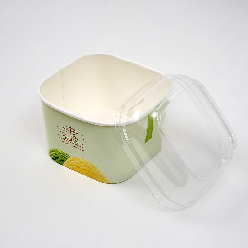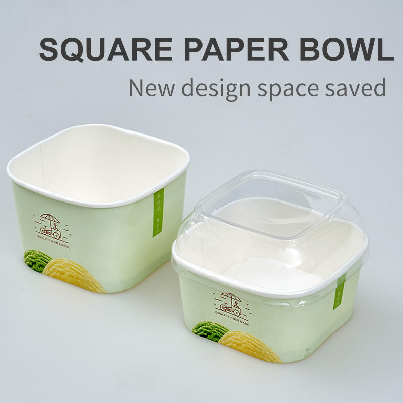 Bicchiere di Carta Biodegradabile Quadrato a Parete Singola con Coperchio, Nuovo Stile, Vendita all'Ingrosso per Biscotti, Torte, Gelati, Hamburger