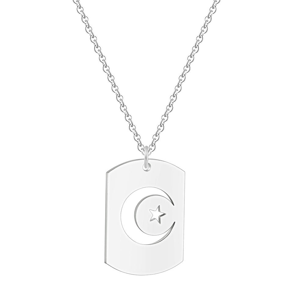 Collana con Pendente a Mezzaluna e Stella in Acciaio Inossidabile Quadrato, Amuleto Spirituale Islamico Musulmano per Uomo e Donna, Gioielli Religiosi Turchi