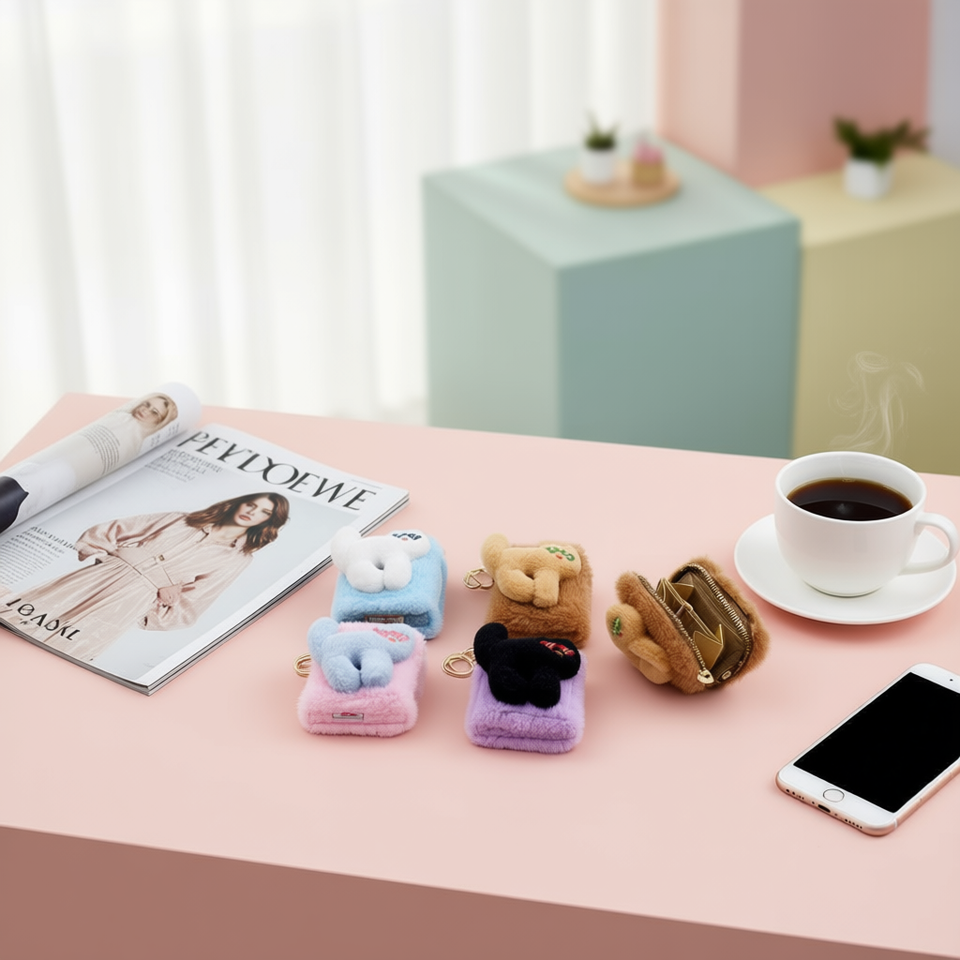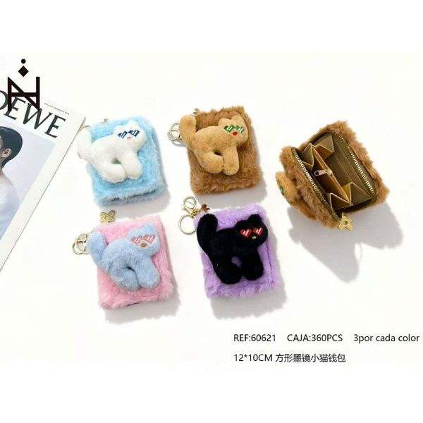 Portamonete Quadrato a Forma di Occhiali da Sole, 12x10cm, Portachiavi in Peluche Morbido per Donne e Ragazze