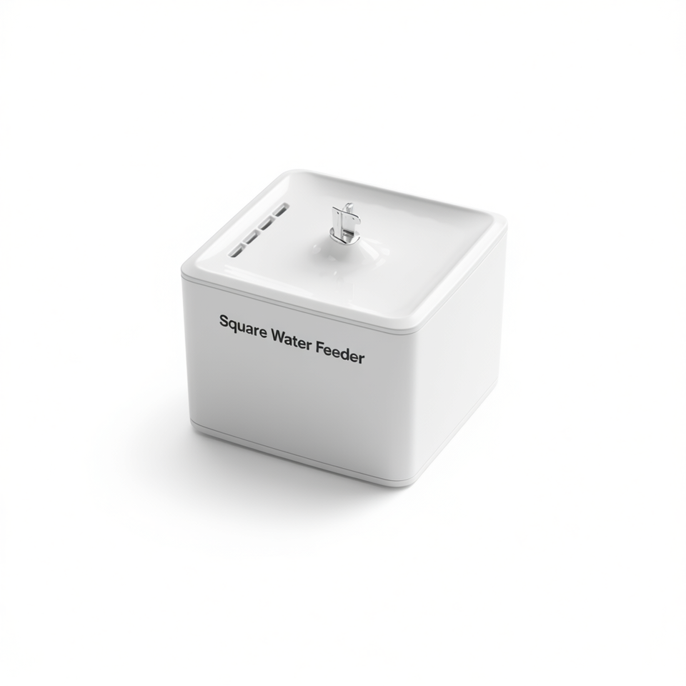 Distributore d'acqua quadrato da 3800 ml alimentato tramite USB, automatico, a prova di perdite, per cani, da interno, in plastica bianca