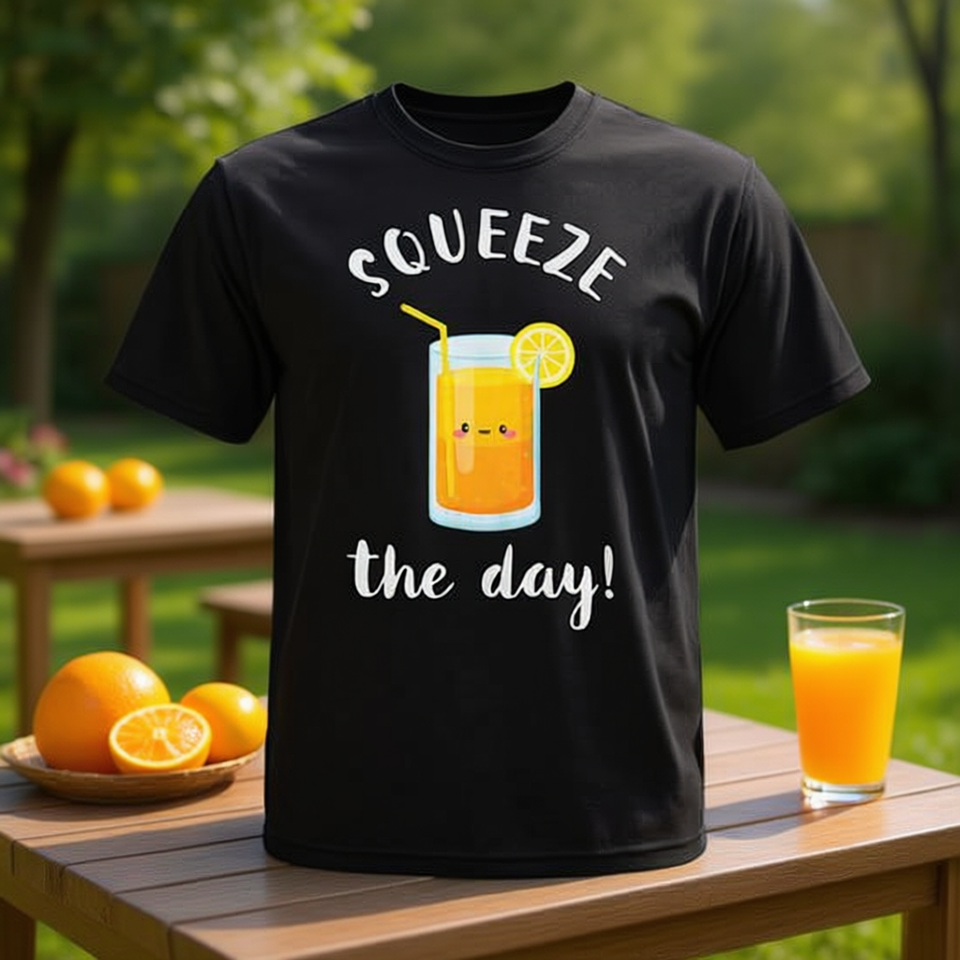 T-shirt con citazione ispiratrice Squeeze The Day Orange Juice Pun