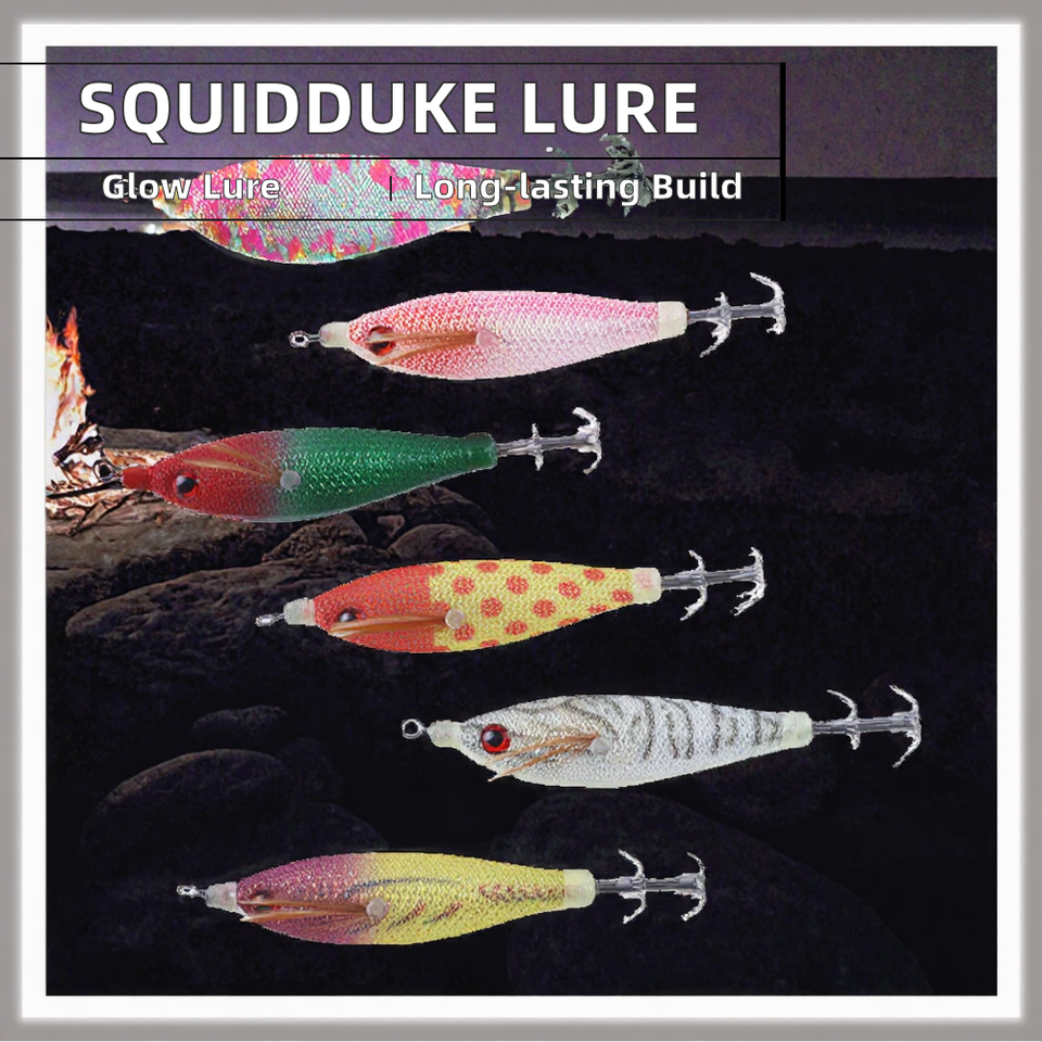 SquidDuke 80mm 5.5g Esca Artificiale Luminosa EGI con Amo Stampato in ABS per Pesca di Gamberi di Legno e Seppie