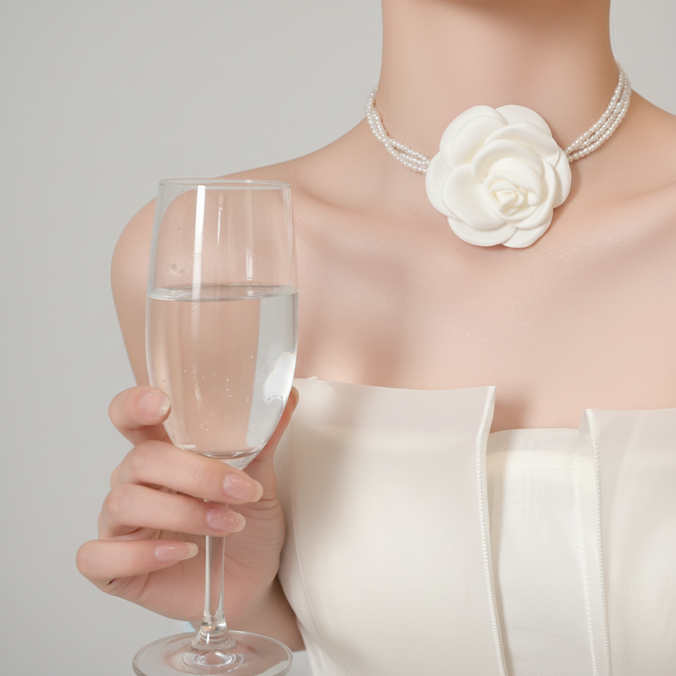 Sseureodam Self-Wedding Party Flower Choker Pearl Necklace Elegant Layered Corsage Rose Fashionable Chic for Weddings Events