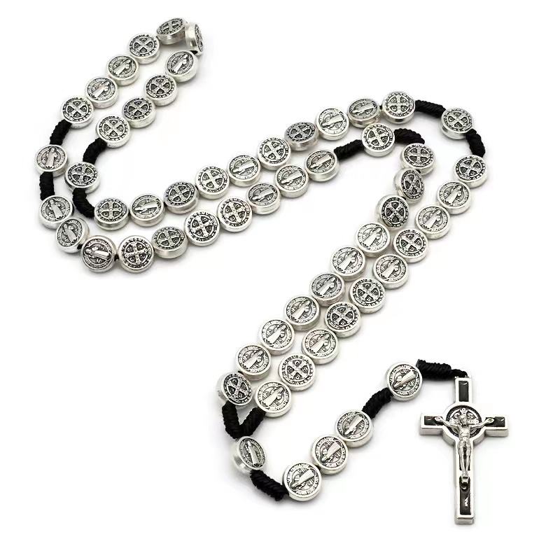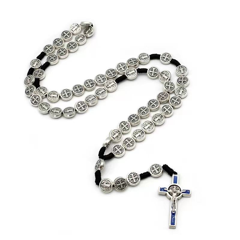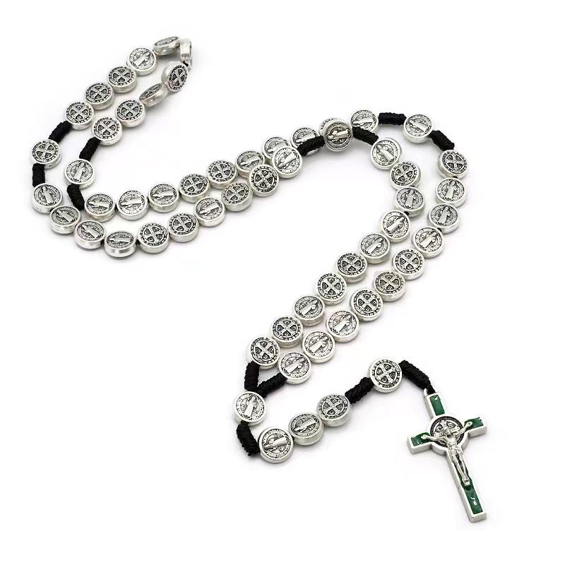 St benedict medaglia fatta a mano con cordoncino annodato collana religiosa per uomini e donne