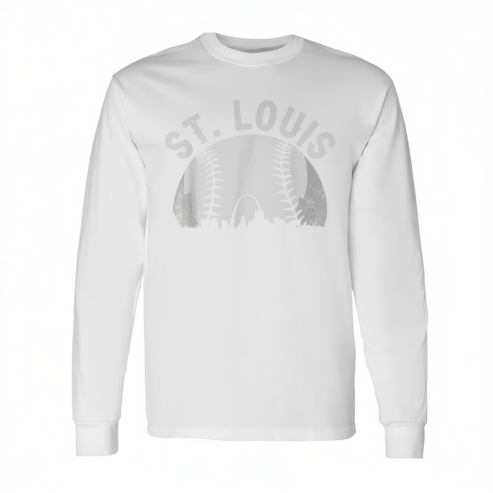 T-shirt a maniche lunghe con skyline di St Louis Baseball