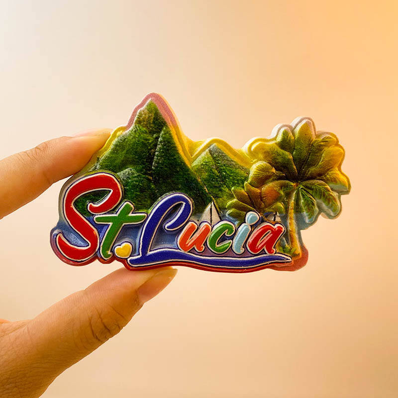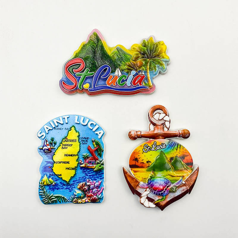 Magneti per Frigorifero 3D in Resina di Santa Lucia Caraibica, Souvenir con Tartaruga e Mappa dei Pitoni per Regali di Viaggio Tropicale