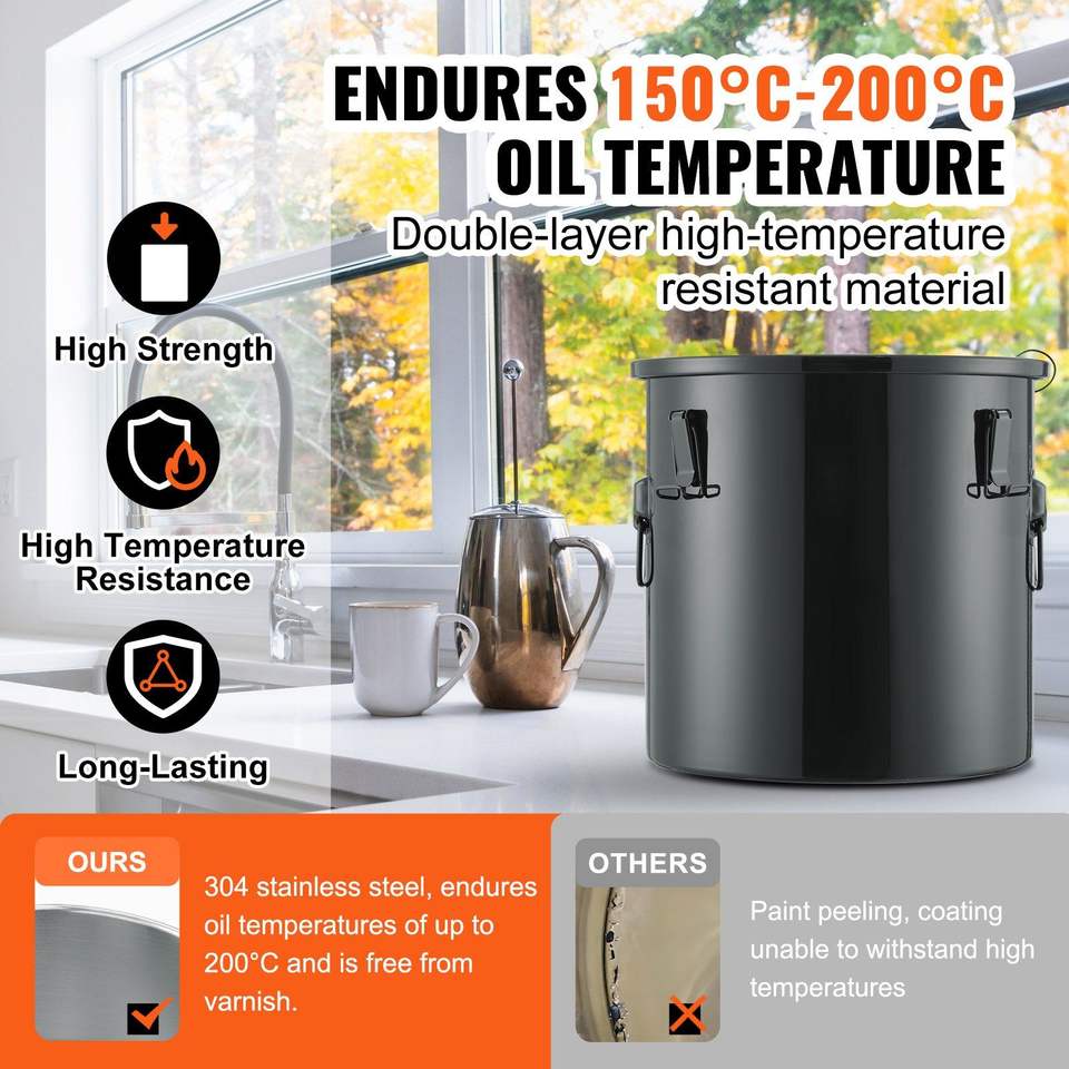 Contenitore per Olio da Frittura in Acciaio Inox da 10 Galloni, Rivestimento Antiruggine, Contenitore per Trasporto Olio, Caddy per Smaltimento Olio da Frittura Commerciale