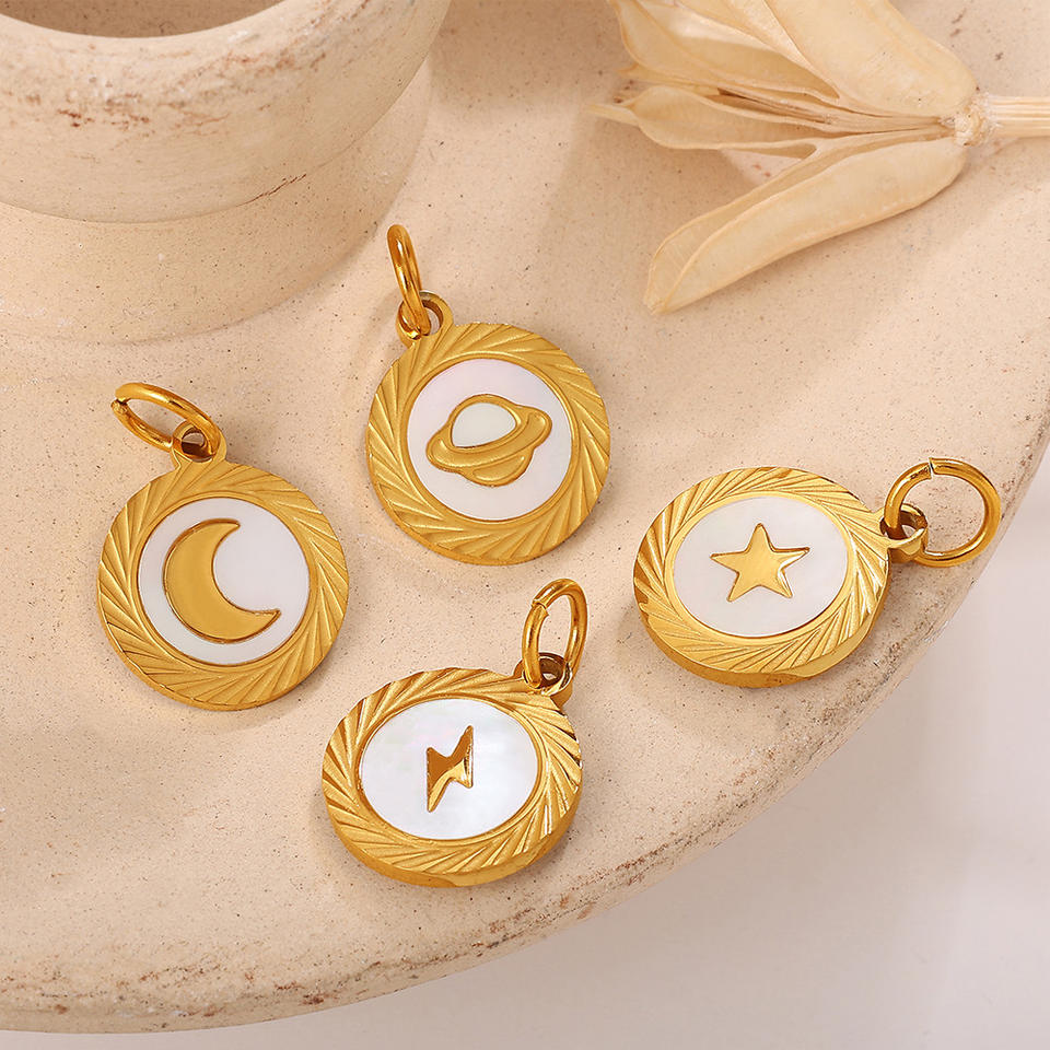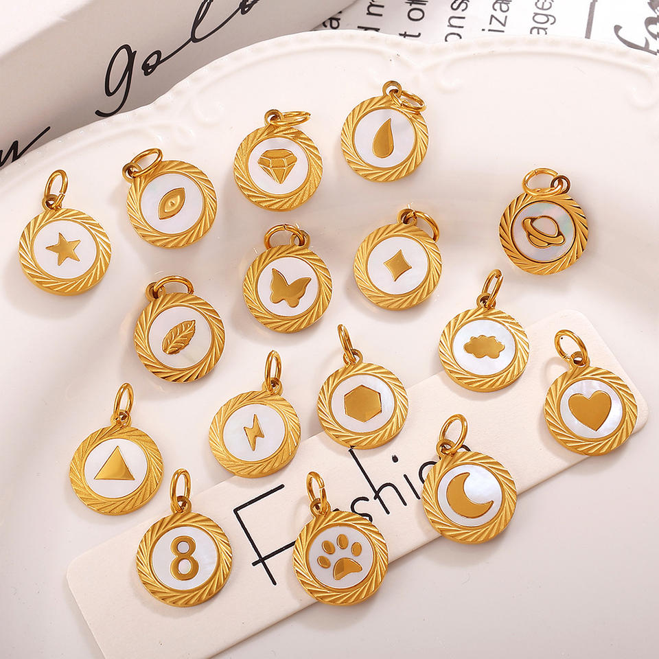 Stainless Steel 18K Gold Plated Mother of Pearl Charms Butterfly Star Sun Heart Moon Cross Pendant