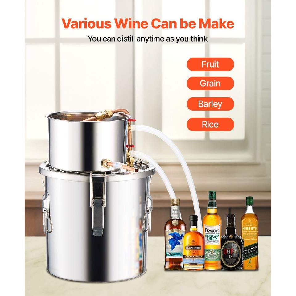 Alambicco in Acciaio Inossidabile da 3 Galloni/11,4 L con Serpentina in Rame, Kit per la Fermentazione Domestica di Acqua e Alcol