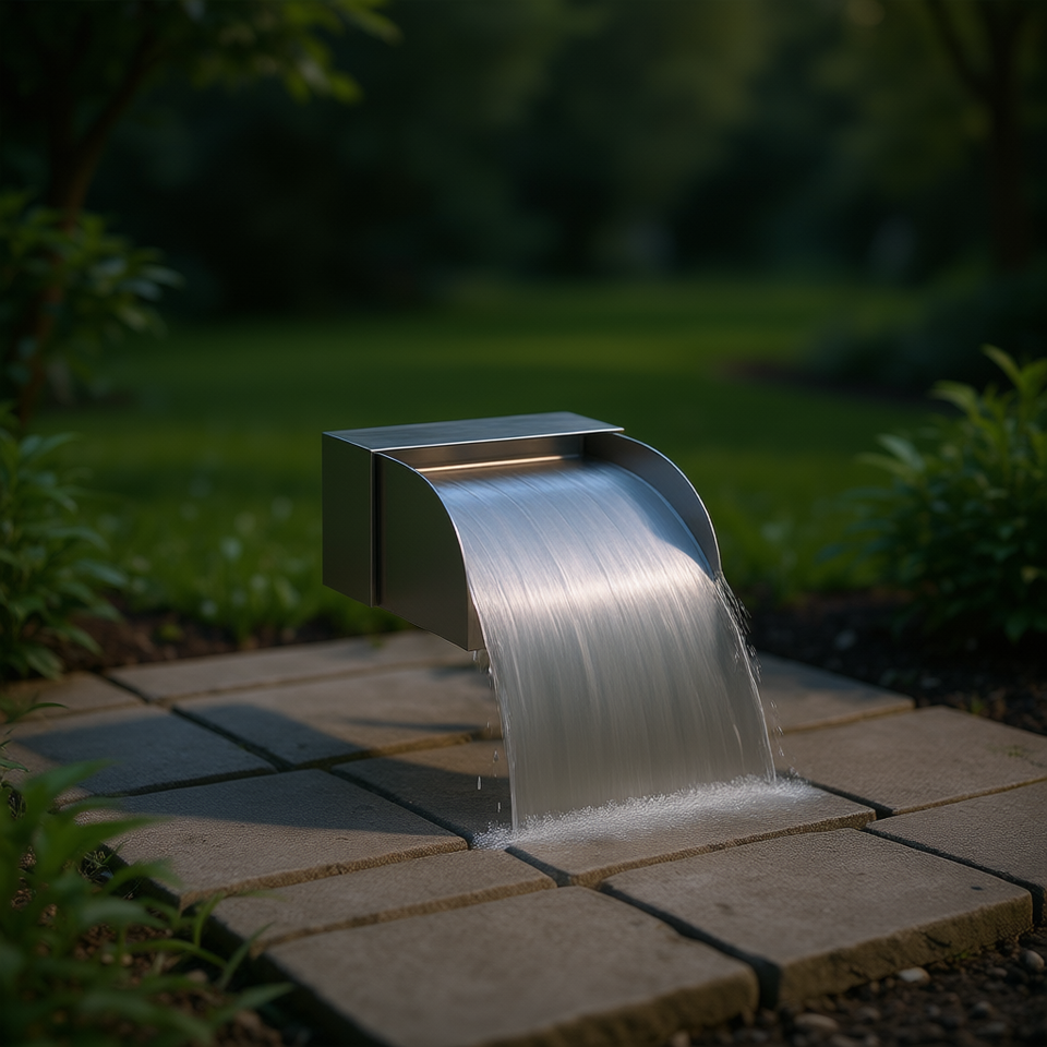Fontana a Cascata in Acciaio Inox 304 11.8x13.4x5.5 Design Minimalista per Esterni Finitura Argento Resistente