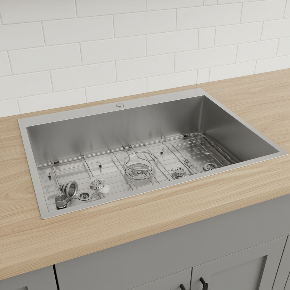 Lavello da cucina a incasso singolo in acciaio inossidabile 33x22 pollici, vasca rettangolare con superficie lucida facile da pulire