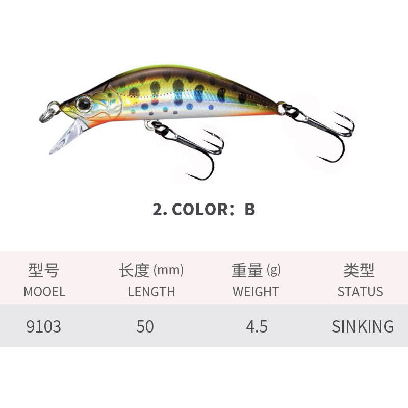 Esca Artificiale Affondante Mini Minnow in Acciaio Inox 50mm/4.5g, Esca Rigida per Pesca in Torrente e Acqua Dolce, Imitazione Bionica di Pesce con Ami 9103