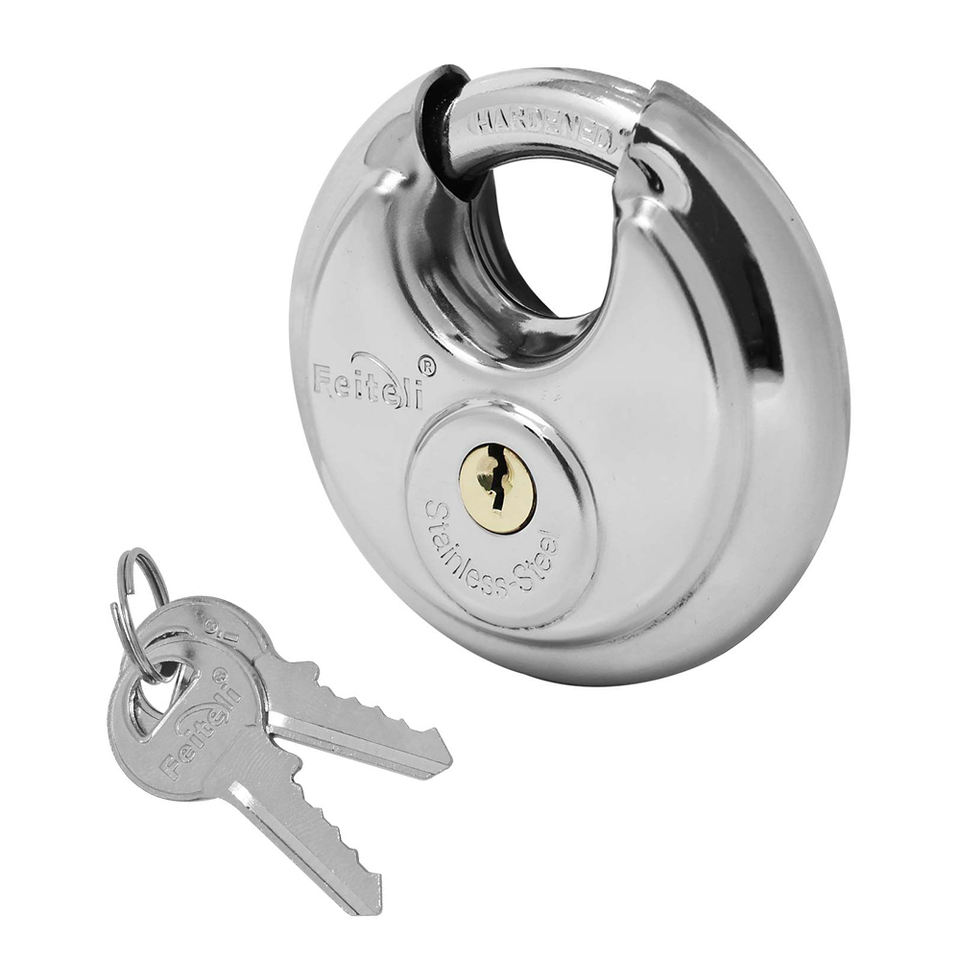 Lucchetto Circolare in Acciaio Inox da 90mm con Chiave, Funzione Impermeabile, Cilindro in Ottone, Materiale in Ferro, Dimensione 70mm