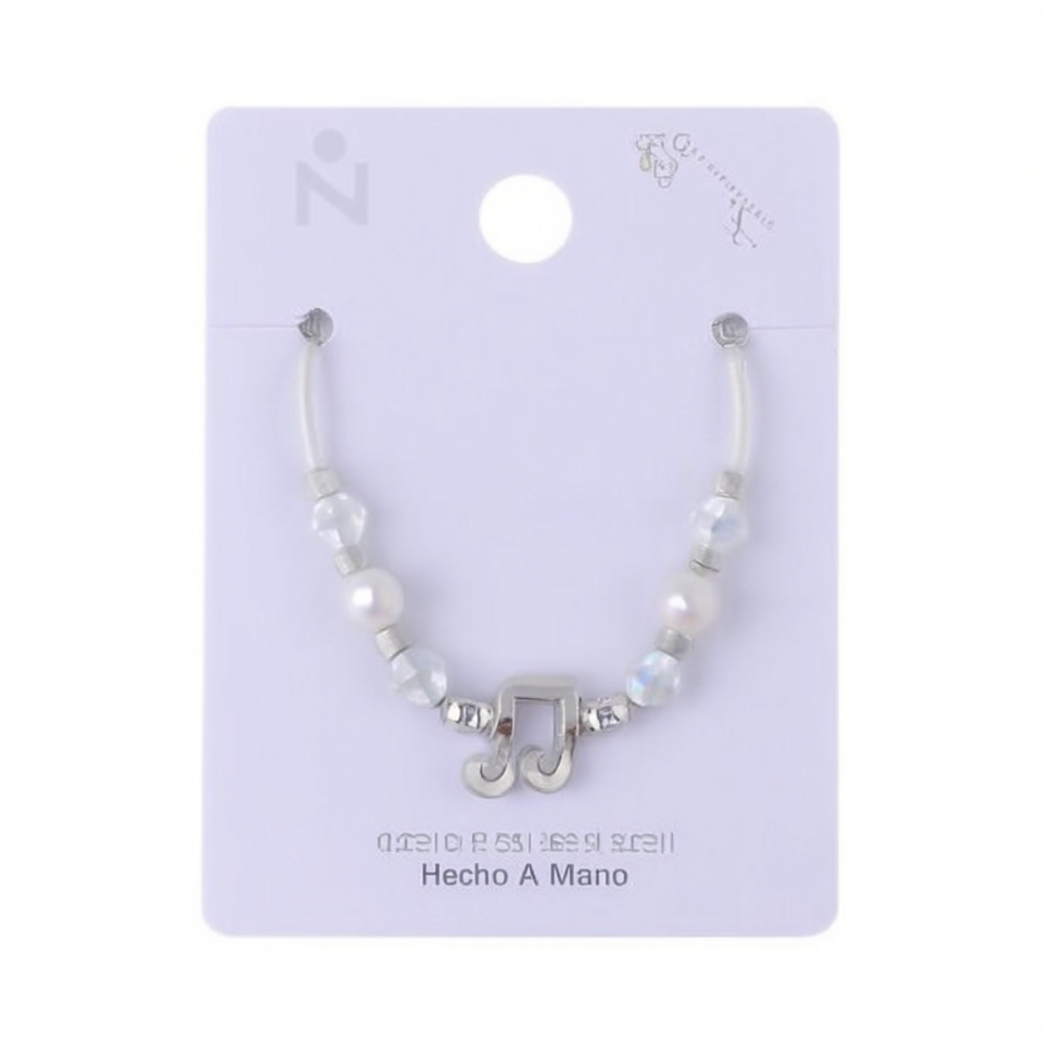 Bracciale in Acciaio Inossidabile con Perle e Cristalli a Forma di Nota Musicale