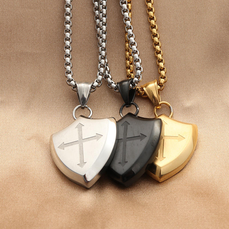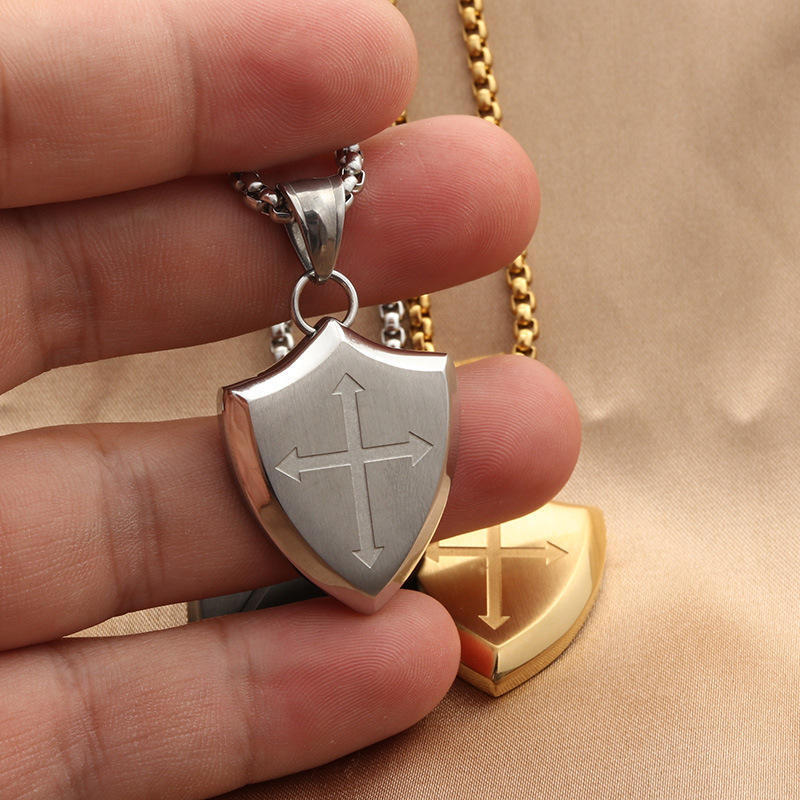 Acciaio Inox Bibbia Verse Scudo Armatura di Dio Joshua 1:9 Collana con Croce di Fede per Uomini Ragazzi