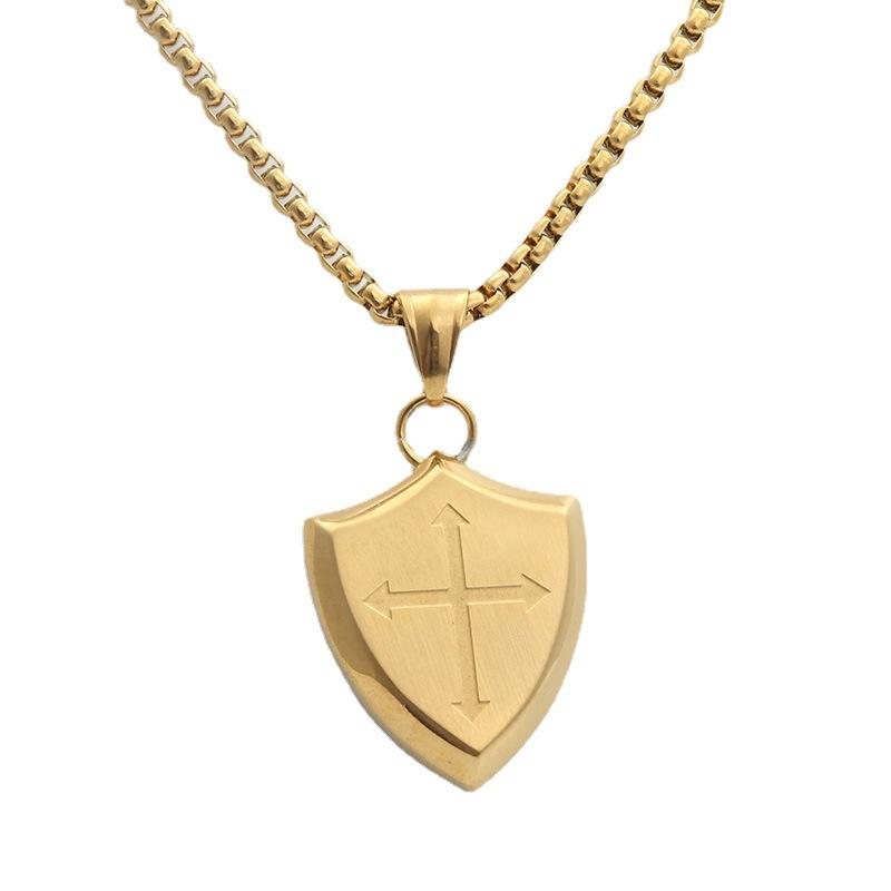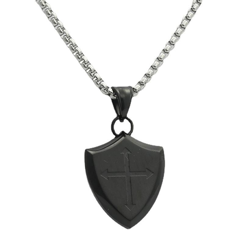 Collana con Pendente a Croce in Acciaio Inossidabile con Versetto Biblico 'Armatura di Dio' Giuseppe 1:9 per Uomini e Ragazzi