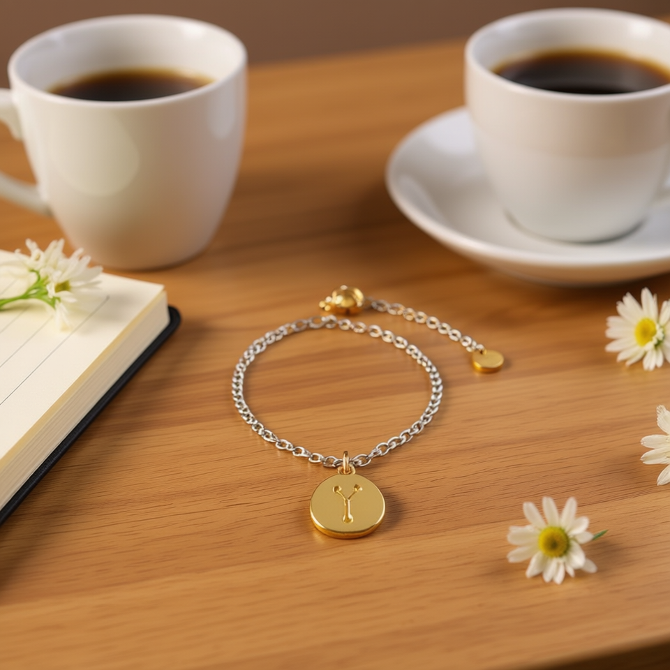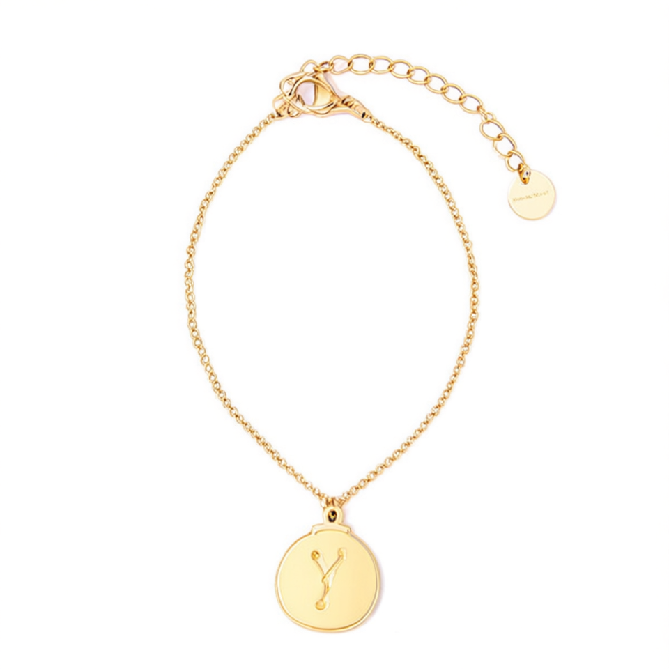 Bracciale Angelina in Acciaio Inossidabile Placcato Oro con Charm a Lettera Y, Catena Regolabile, Gioielli Moda Donna