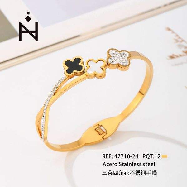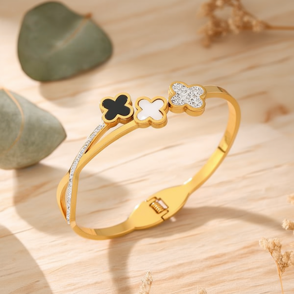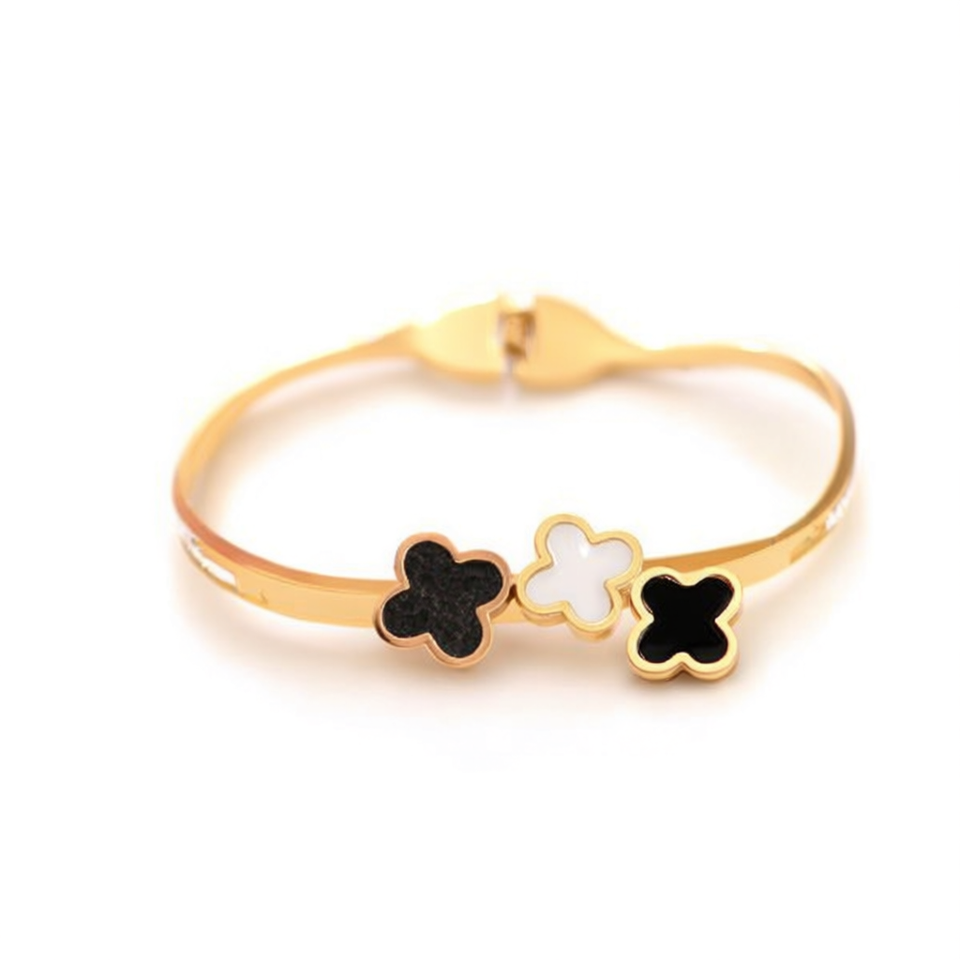 Bracciale in Acciaio Inossidabile con Tre o Quattro Fiori Angolari Placcati Oro, Gioielli alla Moda