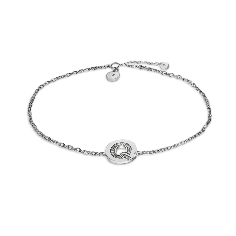 Etichetta pendente monofacciale da 1 cm con lettera Q su un bracciale in acciaio inossidabile