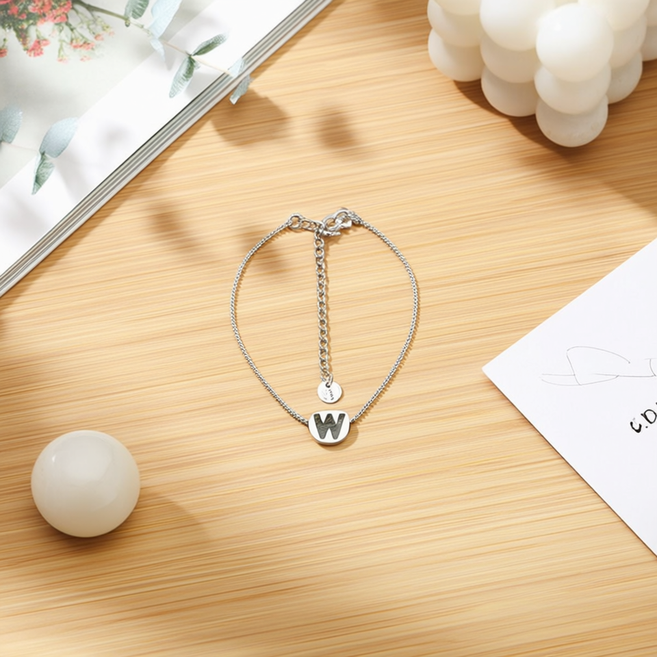 Bracciale in Acciaio Inossidabile con Ciondolo a Lettera W, Etichetta Singola da 1 cm, Gioiello Classico Unisex da Regalo