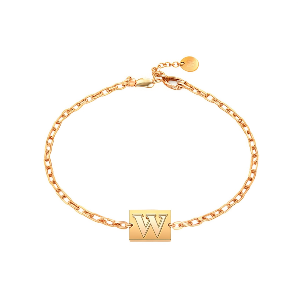 Bracciale in Acciaio Inossidabile con Targhetta a Lettera W 12x14cm, Gioiello di Moda con Ciondolo