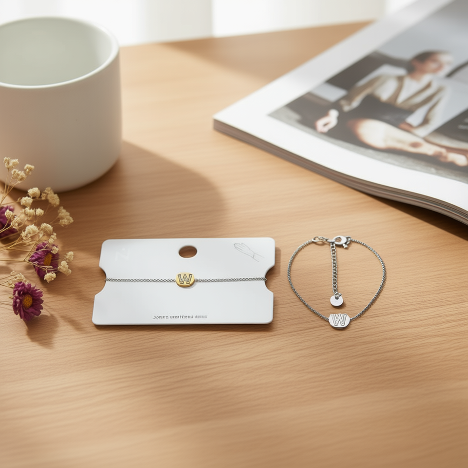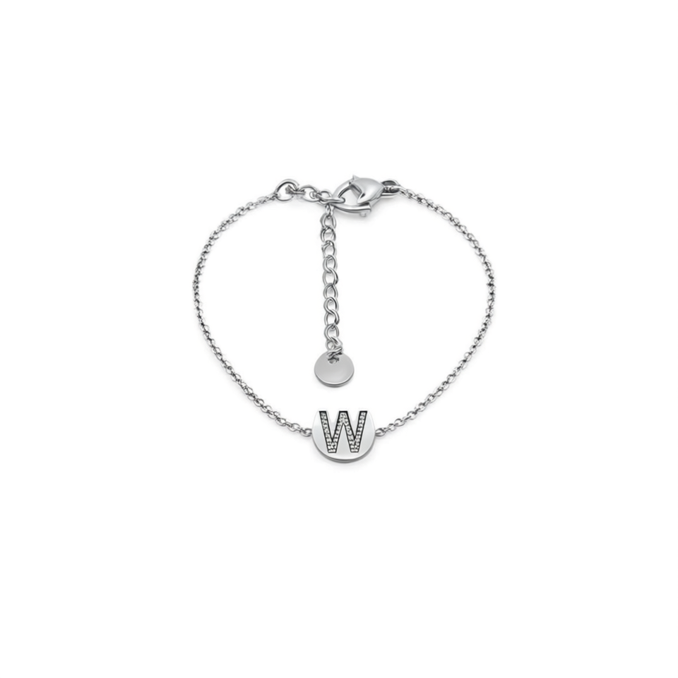 Bracciale in Acciaio Inossidabile con Ciondolo a Lettera W, Etichetta Singola da 1 cm, PULSERA W