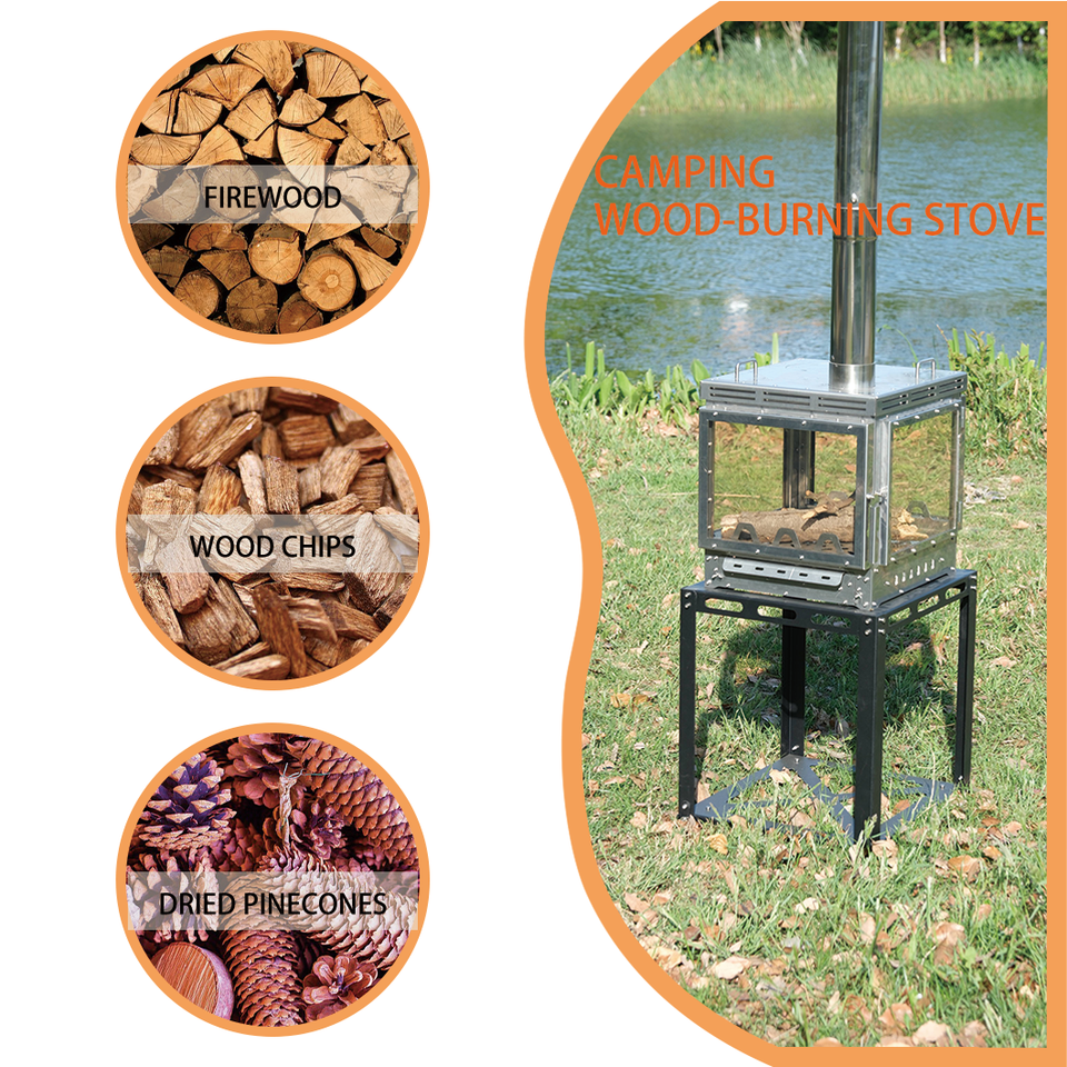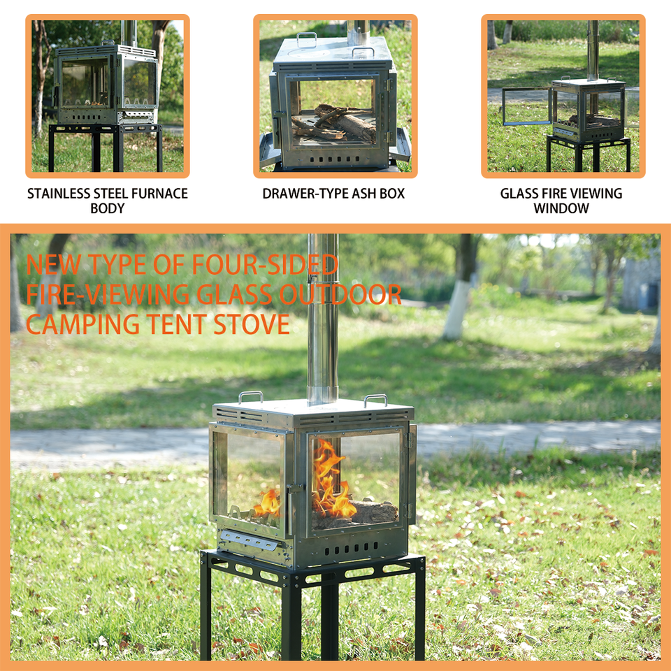 Stainless Steel Camping Wood Stove with Four-Sided Fire-Viewing Glass New Type Outdoor Cookware for Campers