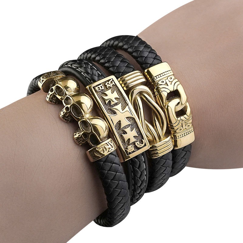 Chiusura in acciaio inossidabile accessori per gioielli da uomo bracciale in pelle nera negozio all'ingrosso