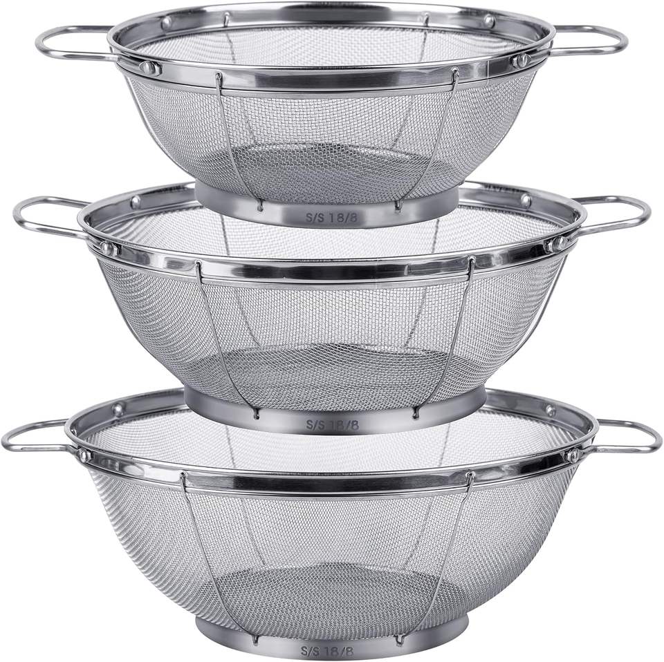 Cestelli Scolapasta in Acciaio Inossidabile con Manici e Base di Appoggio per Scolare, Lavar o Cuocere a Vapore
